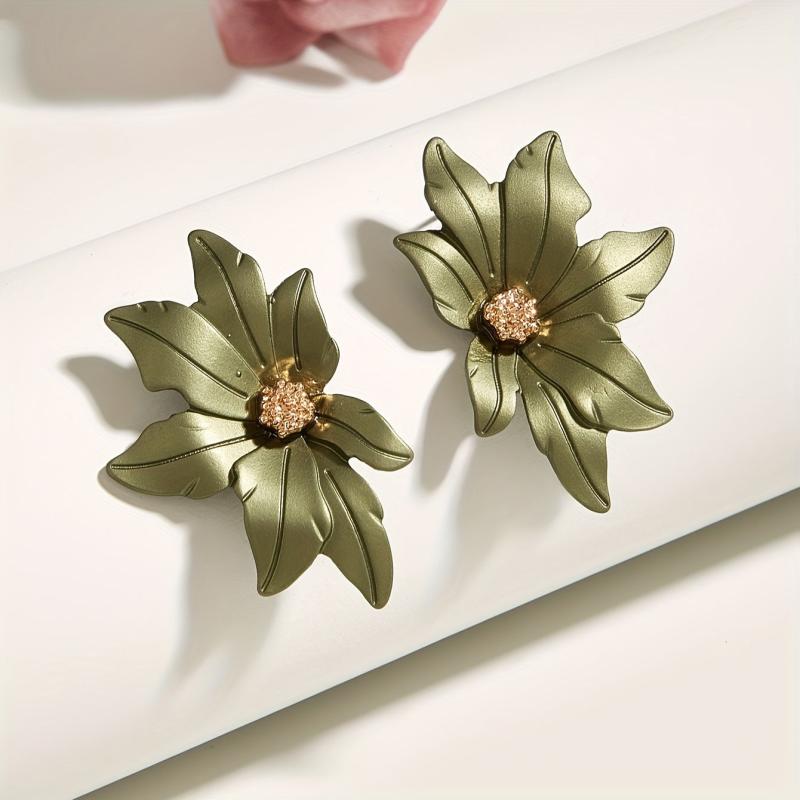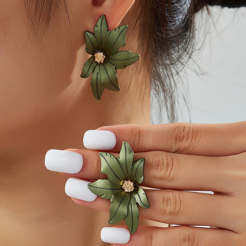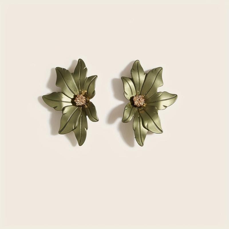 Elevate your style with these versatile symmetrical floral stud earrings in green and golden tone metal. Perfect for daily wear or as a thoughtful gift year-round.