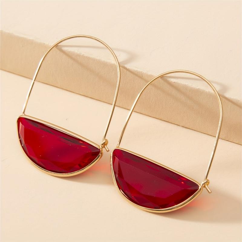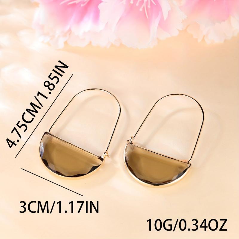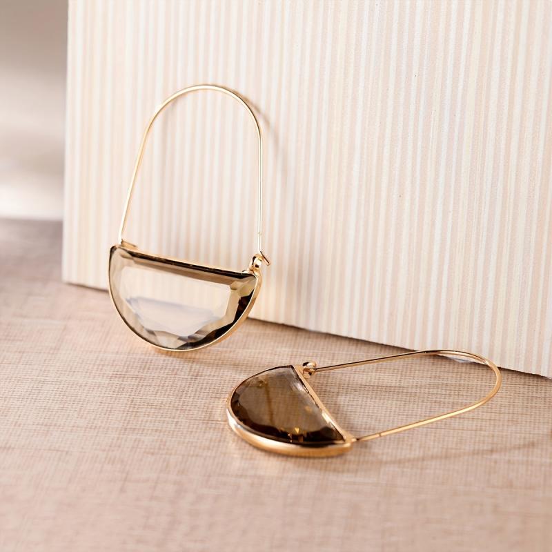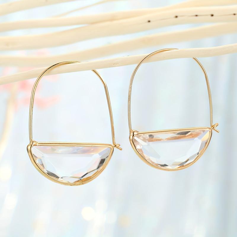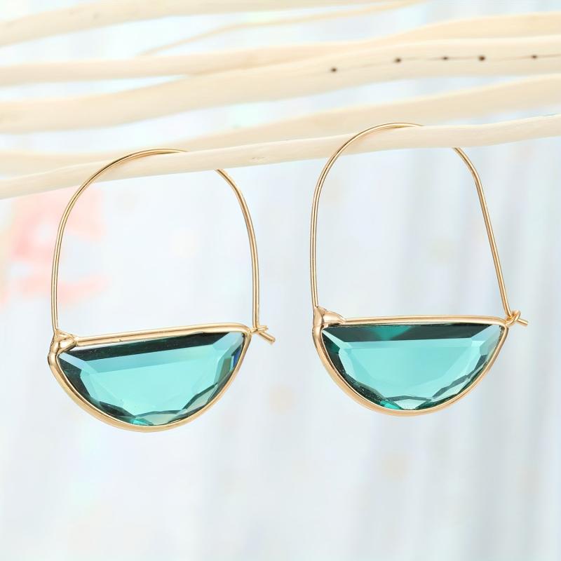 Add a touch of bohemian flair to your outfit with these semi circular transparent green and golden tone hoop earrings embellished with synthetic stones. Lightweight and perfect for everyday wear.