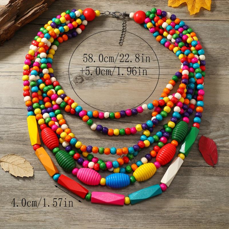 Add a touch of bohemian flair to your outfit with this handcrafted wooden layer necklace. Perfect for daily wear or gift-giving occasions, this vintage boho style accessory is versatile and can be worn all season long.