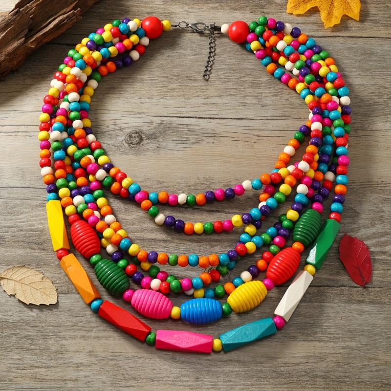Bohemian Handcrafted Wooden Layer Necklace Vintage Boho Style