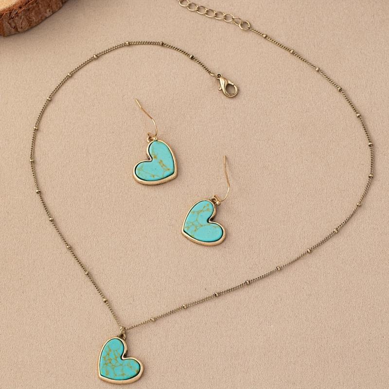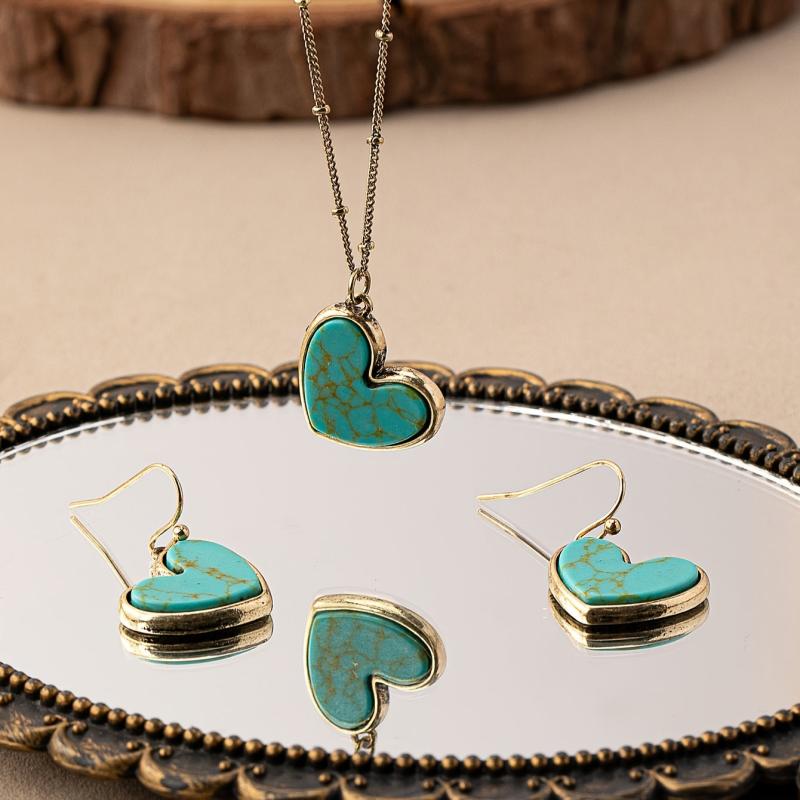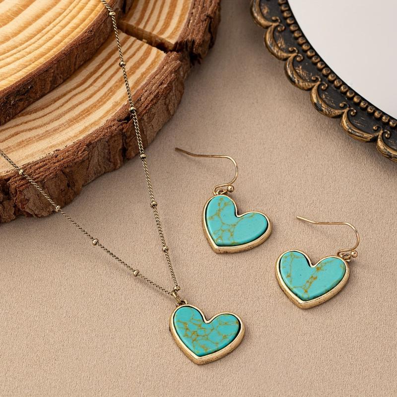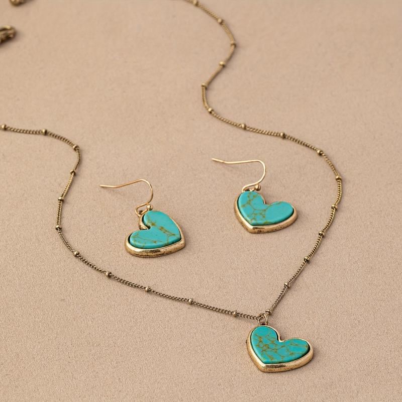 Add a touch of vintage bohemian style to your look with this beautiful set featuring heart-shaped lapis lazuli stones.