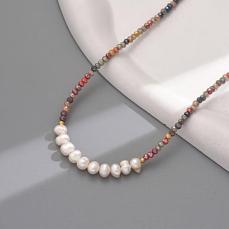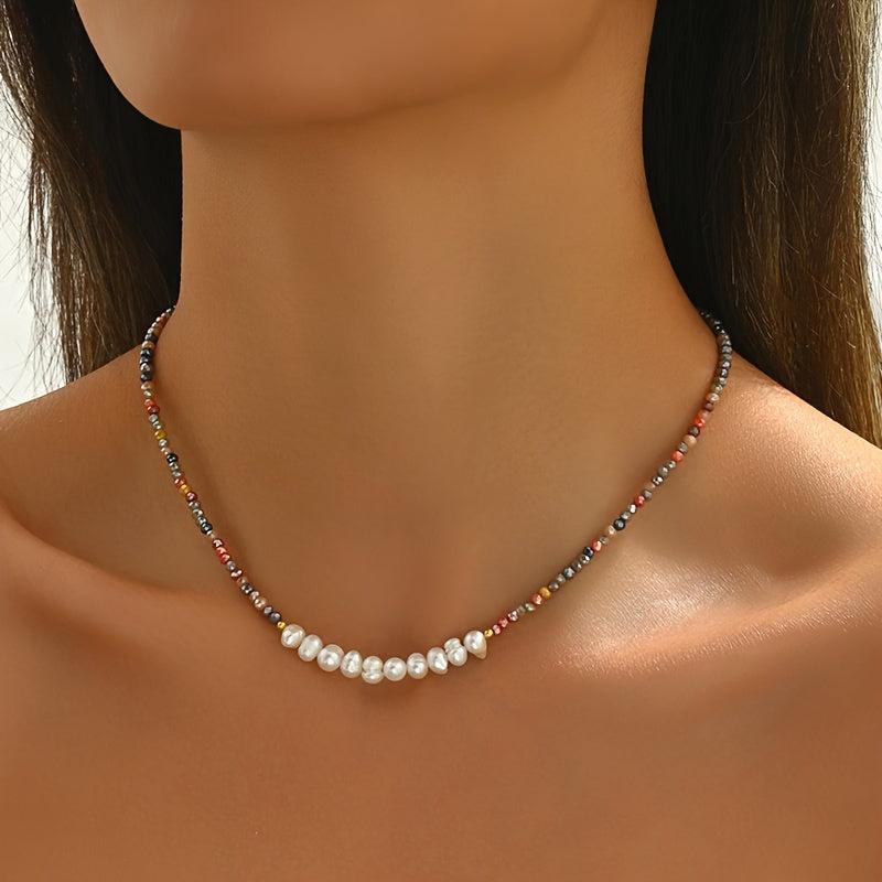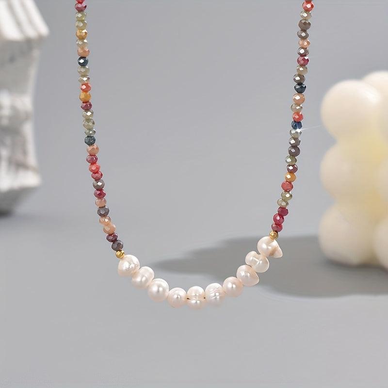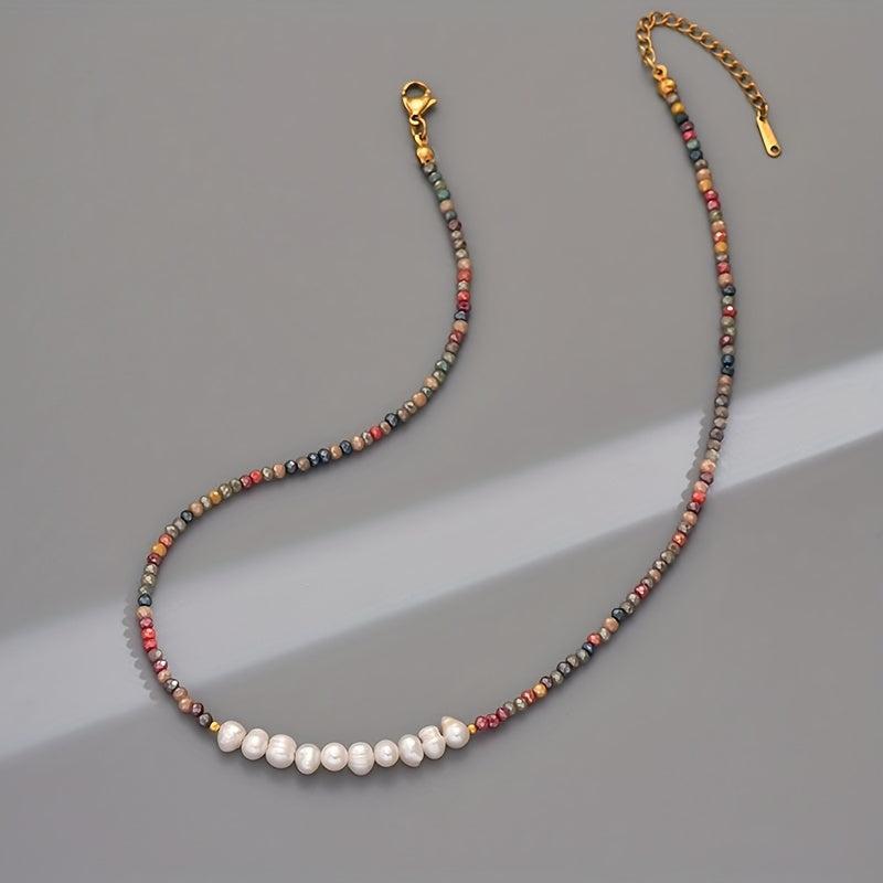Elevate your style with this versatile Bohemian K necklace. Perfect for everyday wear or special occasions, crafted with golden plated beads and freshwater pearl, making it a chic accessory year-round.