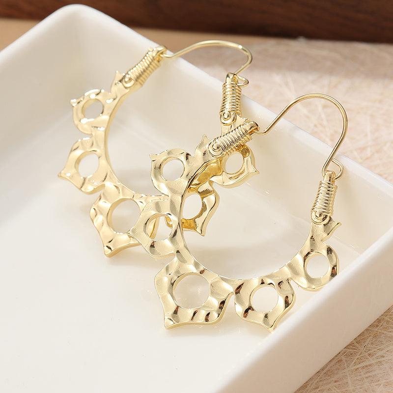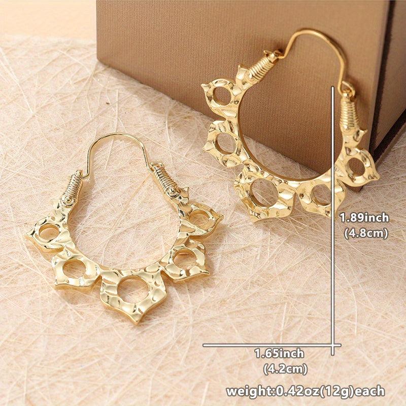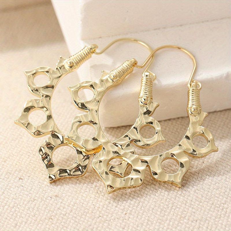 These vintage lotus flower hoop earrings are ideal for daily wear and make a great Mother's gift. They are crafted in golden plated copper and have a bohemian style.