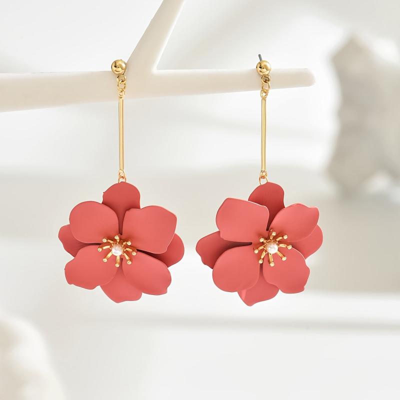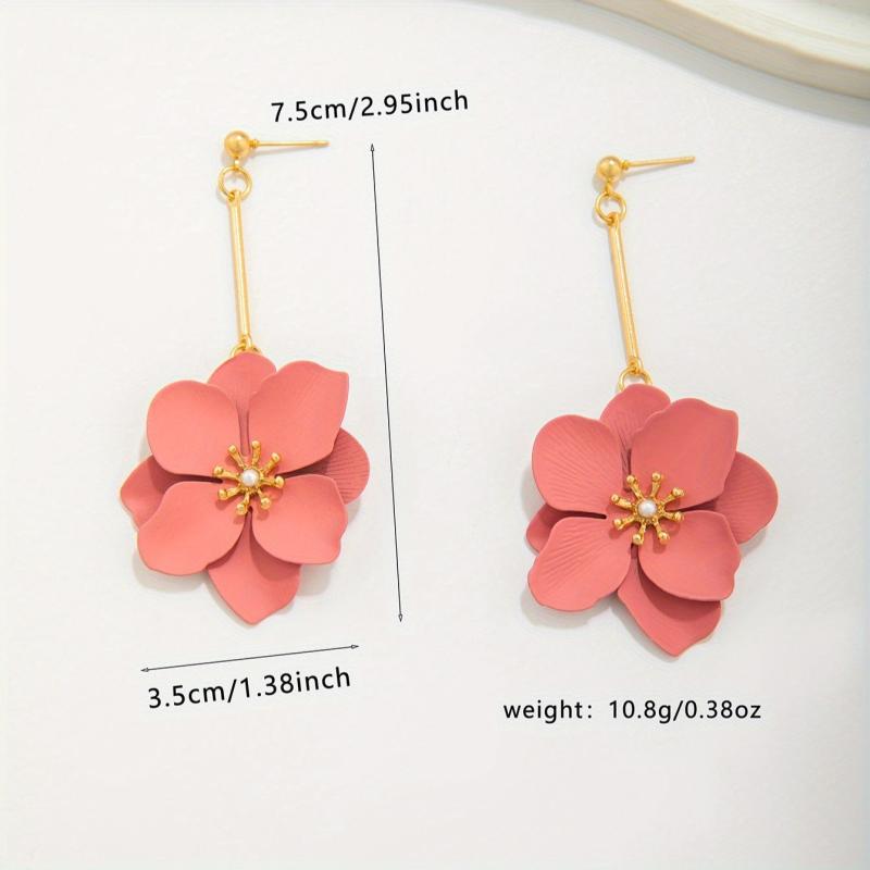 Add a touch of romance to your look with these elegant Bohemian style pink flower dangle earrings. Perfect for parties, vacations, and all seasons.