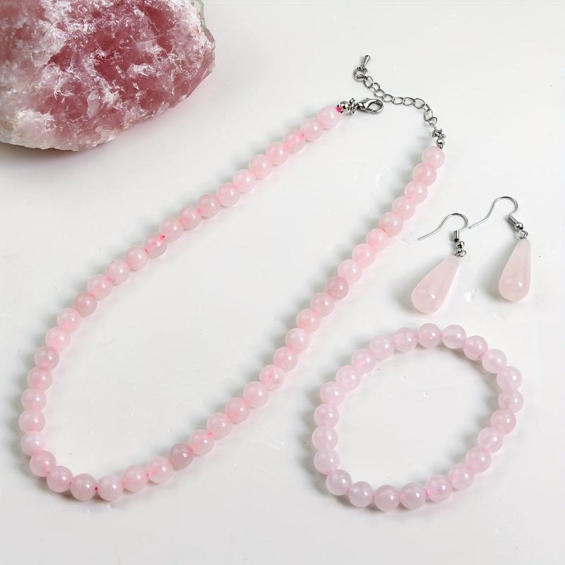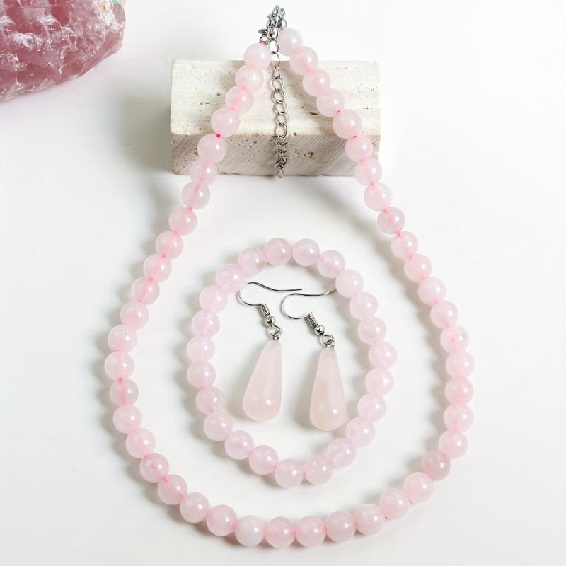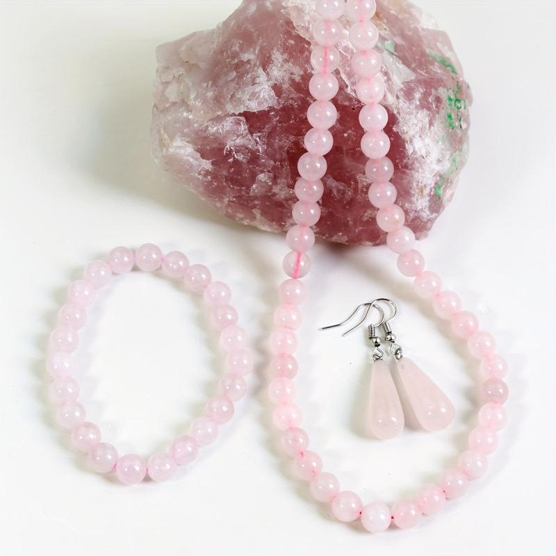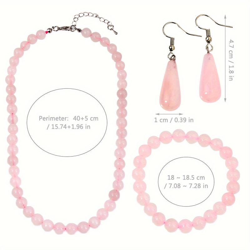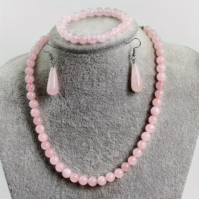 This 4-piece set includes a necklace, bracelet, and earrings with varying shades of pink natural stones. Perfect for daily wear, parties, or as a holiday gift.