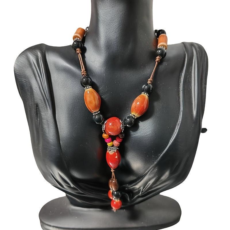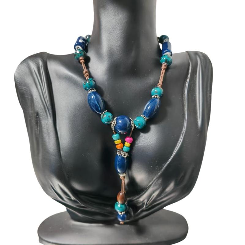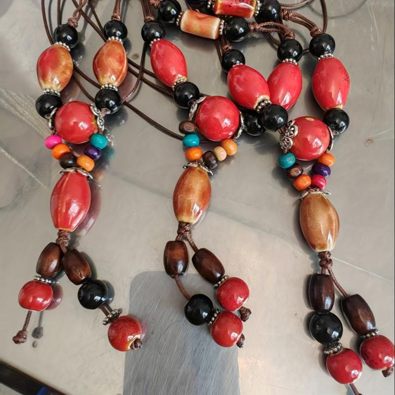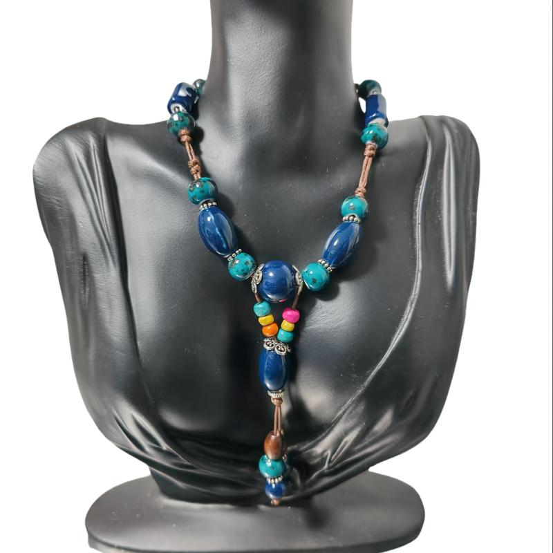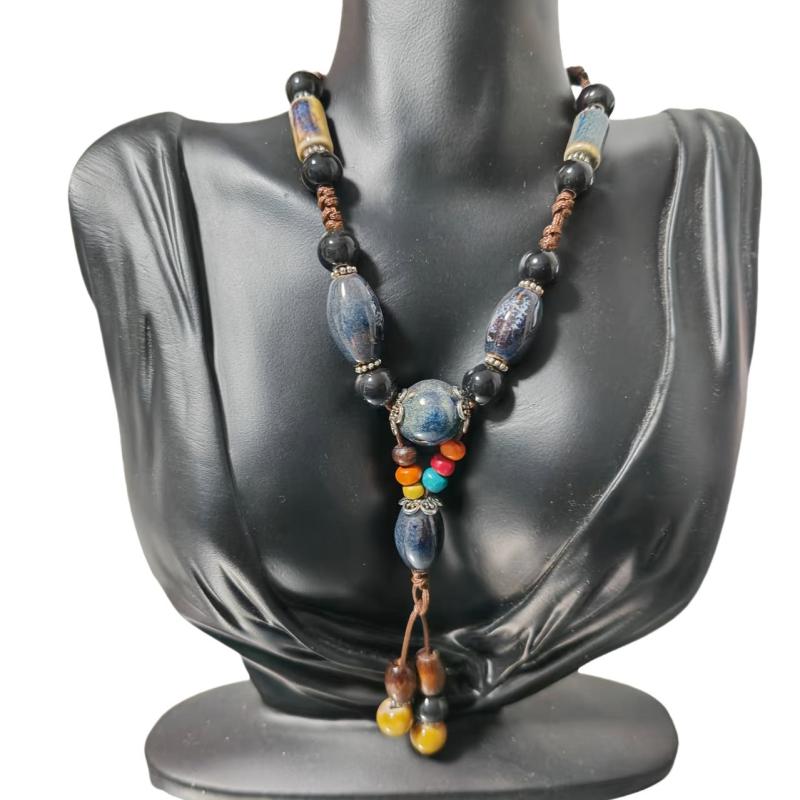Elegant long necklace pendant made of high temperature fired ceramics, perfect for versatile styling with a variety of outfits.