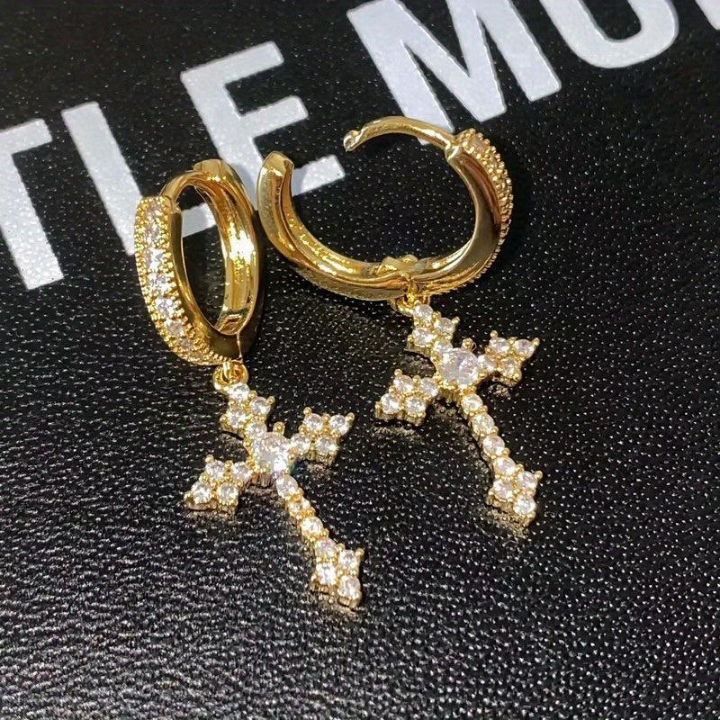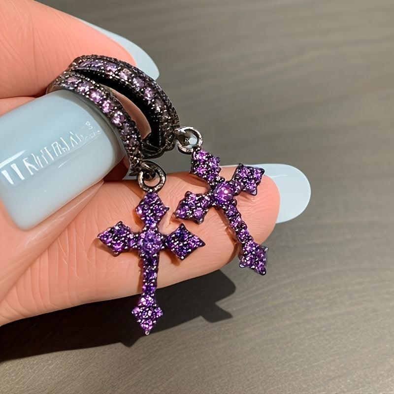 These trendy earrings feature a Bohemian purple cross design inlaid with cubic synthetic zirconia studs. Suitable for both men and women, perfect for daily wear and parties.