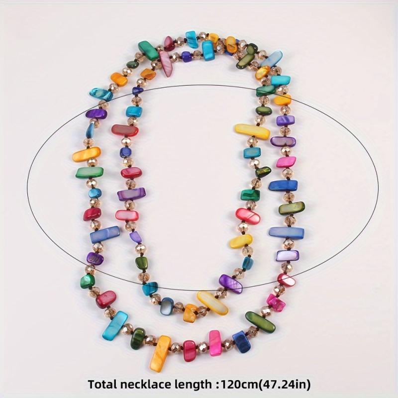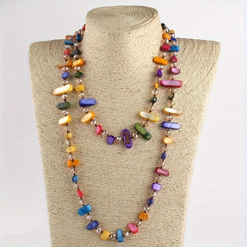 Bohemian Rainbow & Shell Bead Necklace for Women Long Knotted Layered
