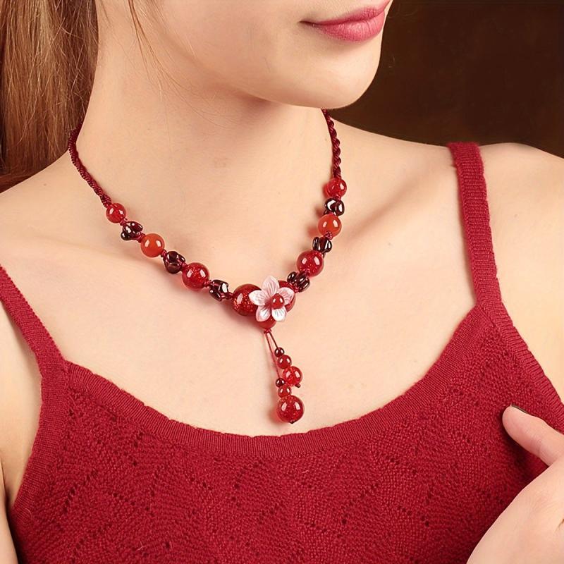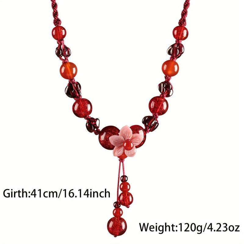 This lightweight and durable necklace features a red flower pendant made of glass beads. Perfect for adding a touch of bohemian style to any outfit.