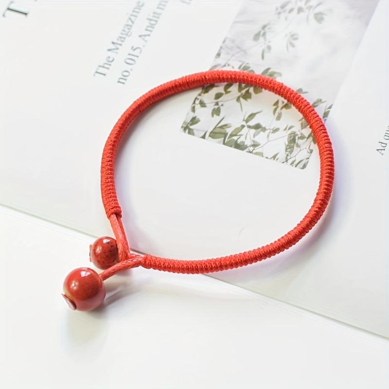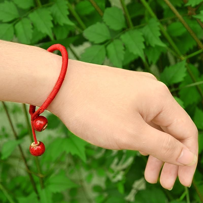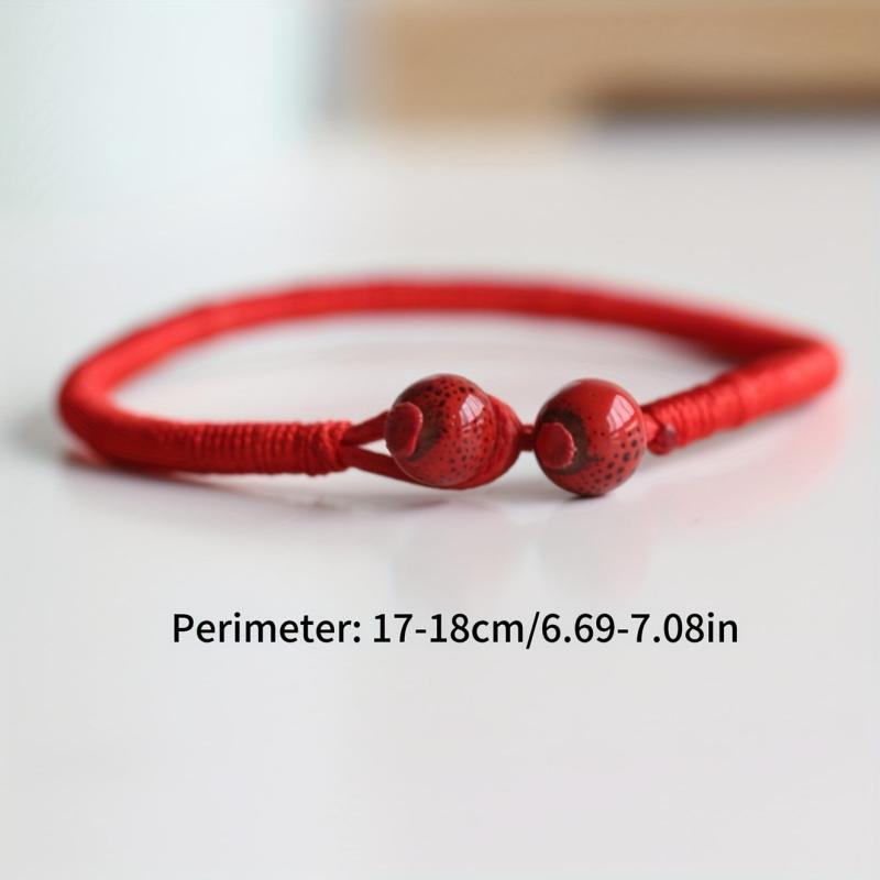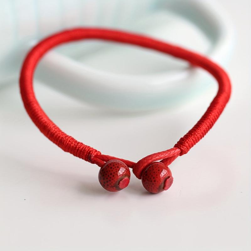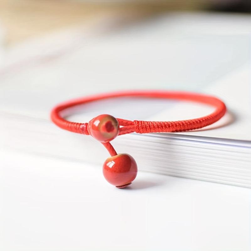 This lucky red rope bracelet with ceramic beads is perfect for adding a bohemian touch to your outfit. Adjustable knot for easy wear, suitable for Valentine's, weddings, and casual attire.