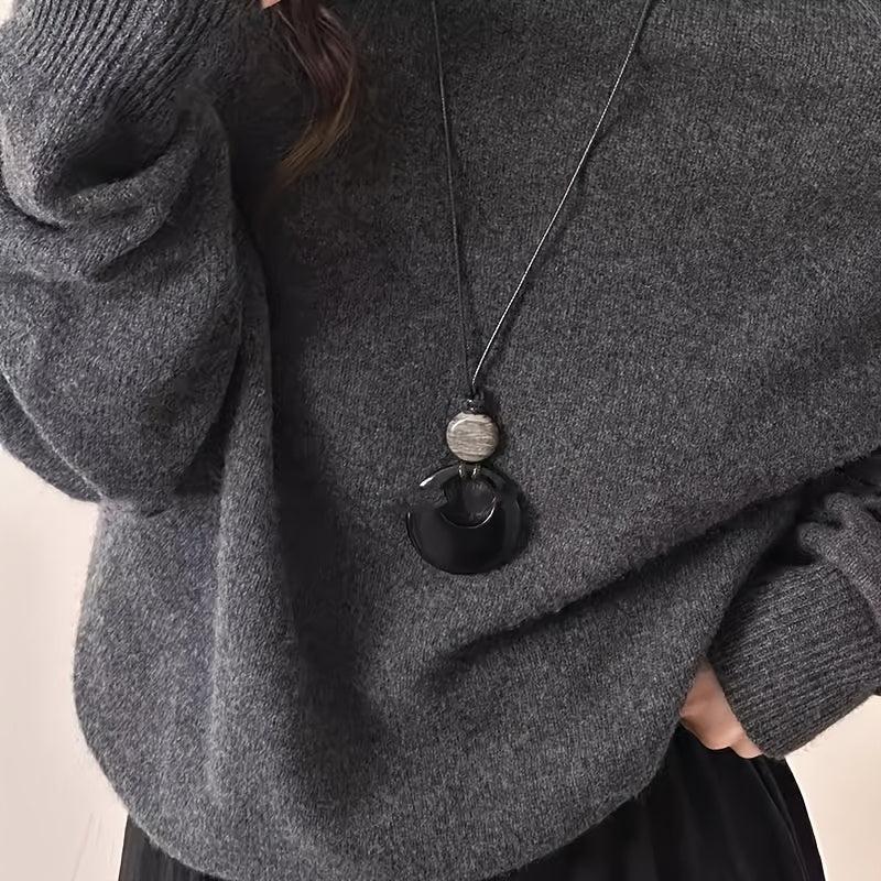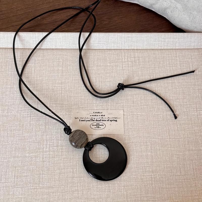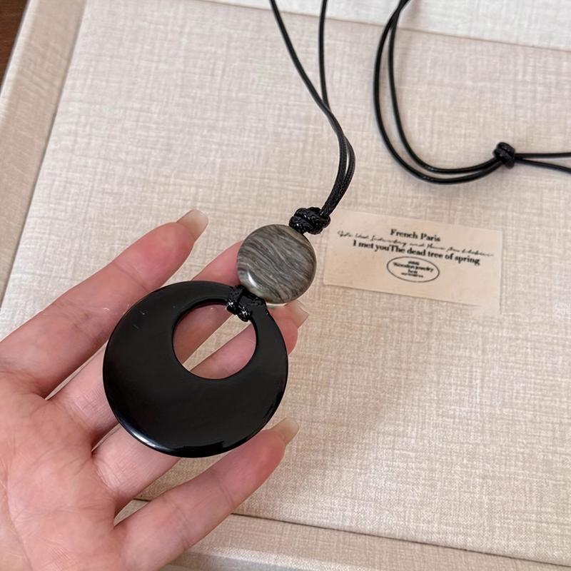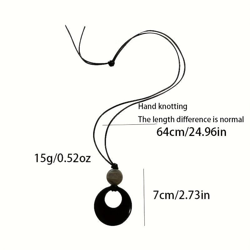 This vintage-inspired pendant necklace features a resin stone design that adds a bohemian touch to your outfit. It's a versatile accessory suitable for everyday wear and music events. The long chain adds a unique charm to your look.