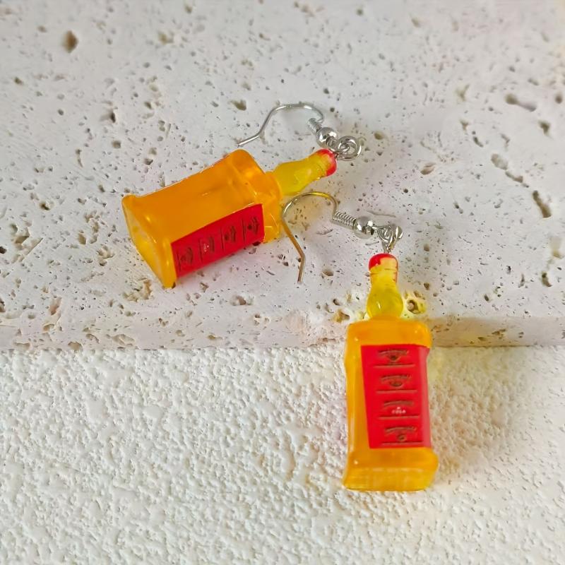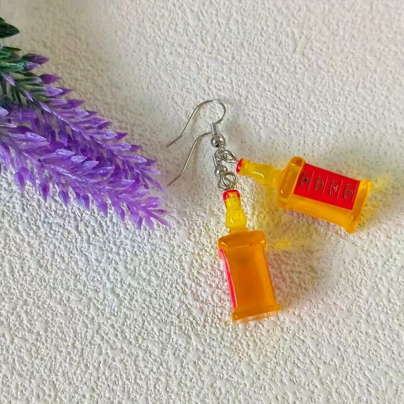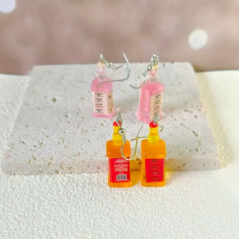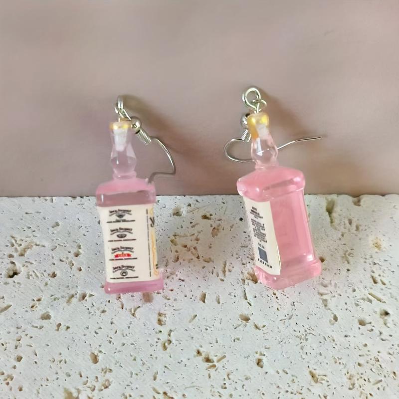 These Bohemian style resin wine bottle pendant earrings are perfect for casual wear and make a great gift. They feature iron hooks for durability and a vintage look.
