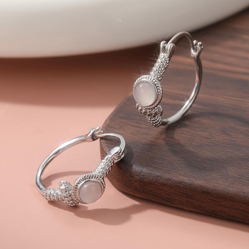 Dazzle in these elegant knot earrings featuring moonstone stones. These durable copper earrings are perfect for everyday wear or parties. Makes a great gift for mothers.