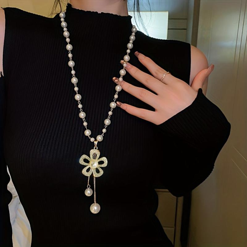 Add a touch of elegance to your outfit with this bohemian long necklace featuring sparkling rhinestones and floral design. Perfect for both casual and formal occasions.
