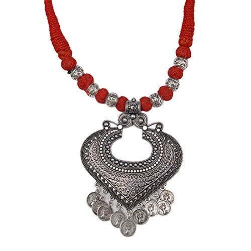Elevate your look with this unique and versatile rope necklace, featuring a tribal gypsy design. Handmade with quality materials, this statement piece is perfect for adding a touch of bohemian flair to any outfit.