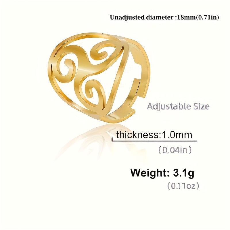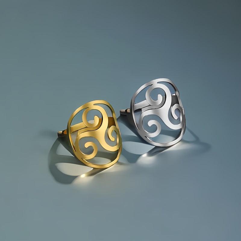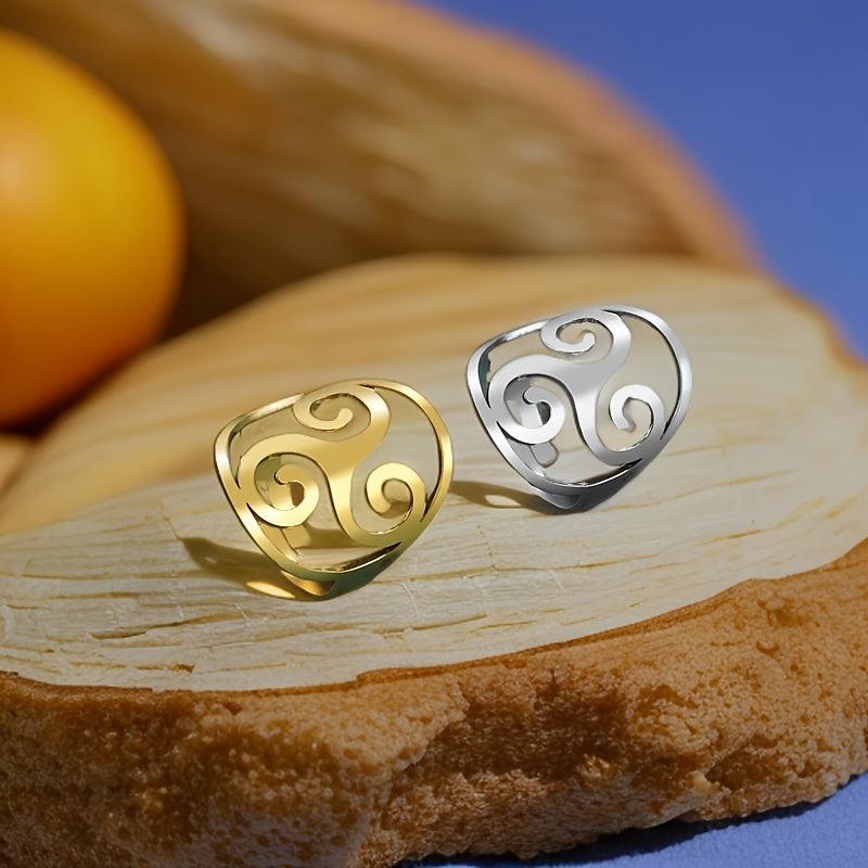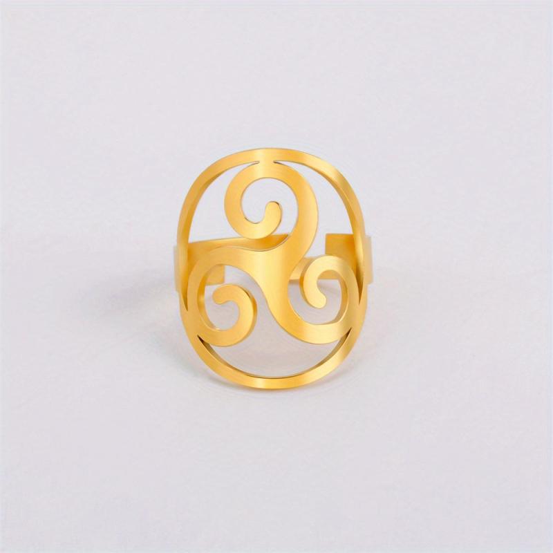 Embrace your unique style with this vintage Viking-inspired ring featuring a spiral triangle design. Crafted from high-quality stainless steel with an 18K gold plating, this ring is both stylish and durable.
