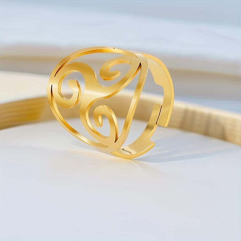 Bohemian Spiral Triangle Ring Stainless Steel 18K Gold Plated
