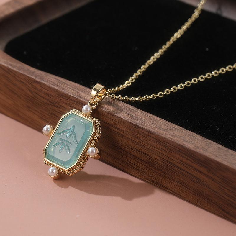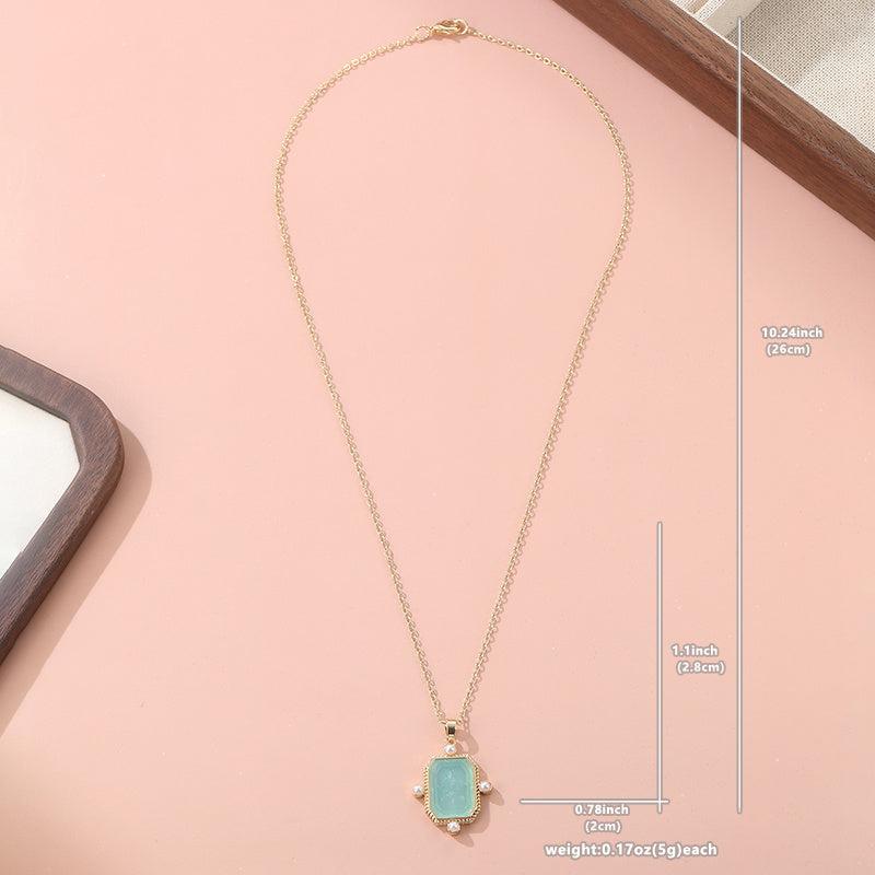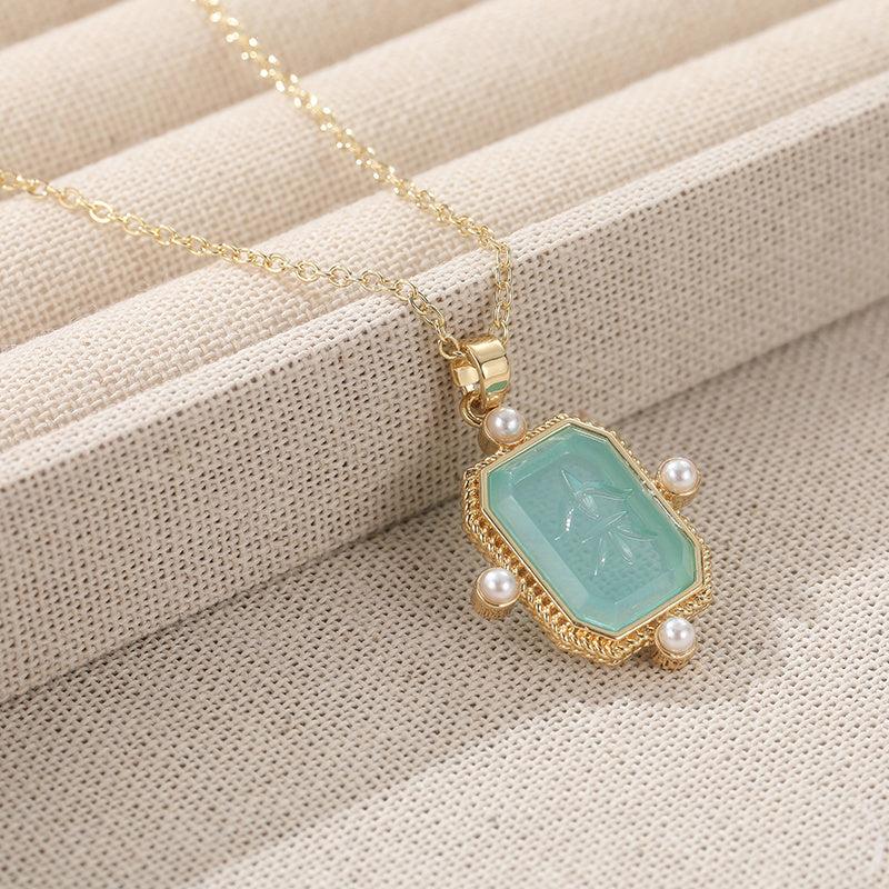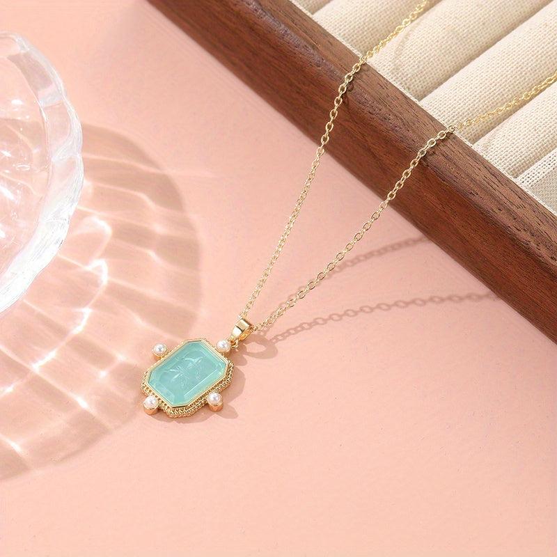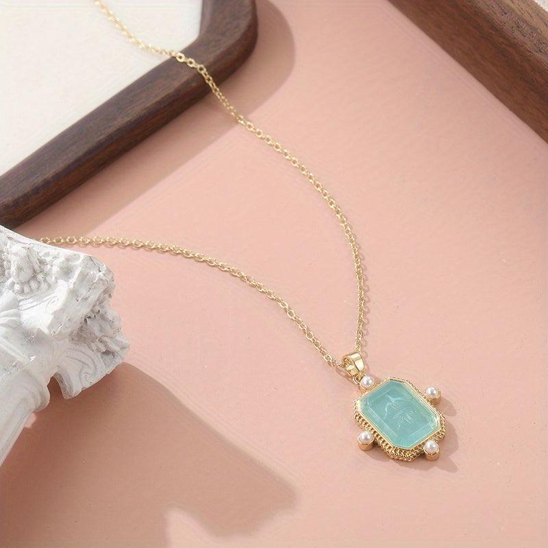 Elevate your daily look with this bohemian style pendant necklace featuring a square carved design and sparkling golden plated copper chain. The faux pearl accents add a touch of elegance to this versatile piece of jewelry, perfect for daily wear and gifting to your loved ones.