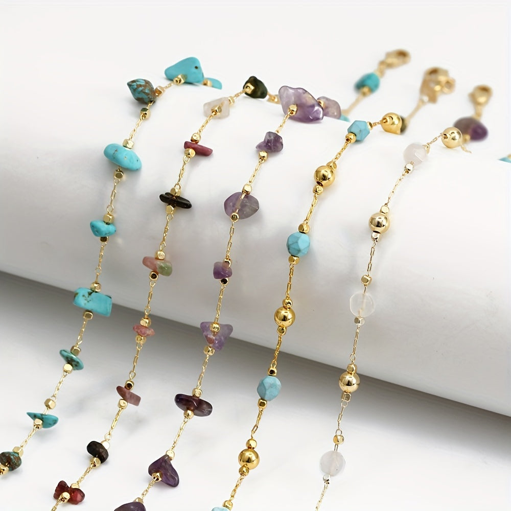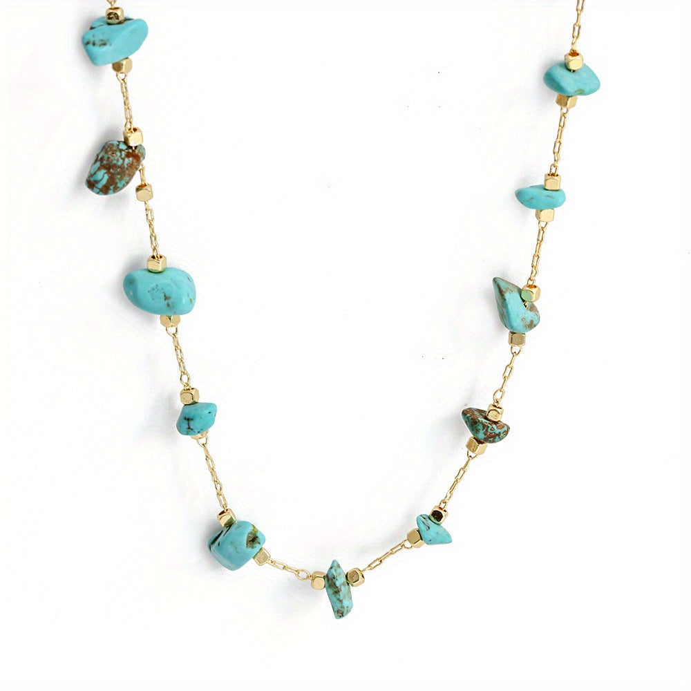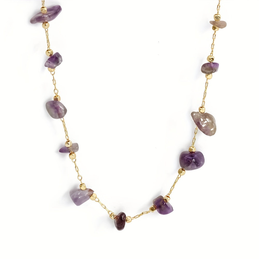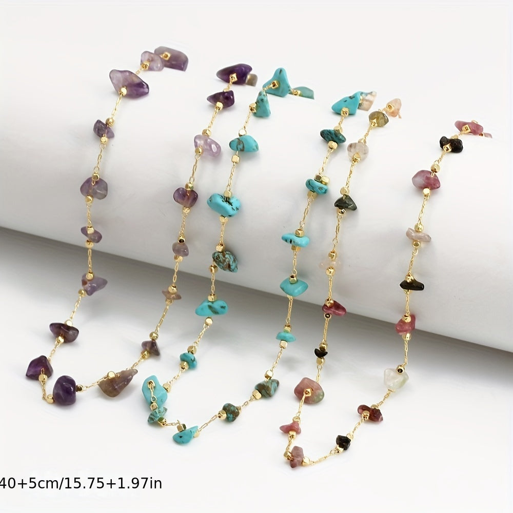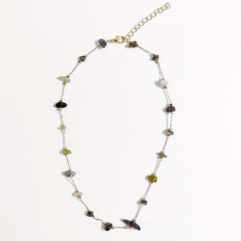 Elevate your look with this colorful crushed stone necklace, a perfect bohemian accessory for any outfit.