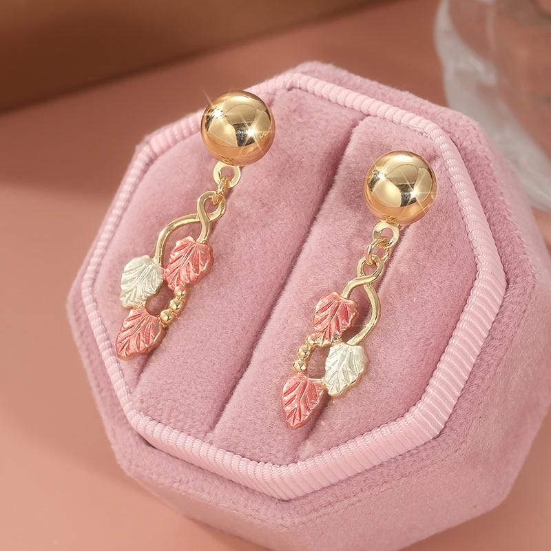 Elegant dangle earrings featuring grape leaf design, made of 14K gold plated copper. Perfect for daily wear and gift giving, suitable for all seasons.