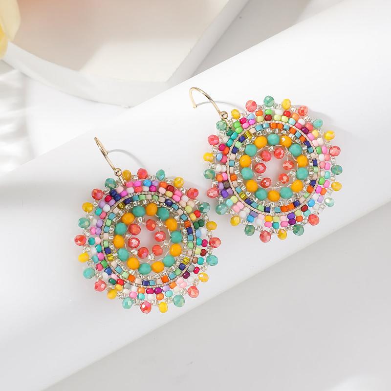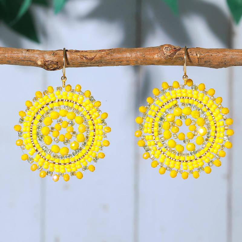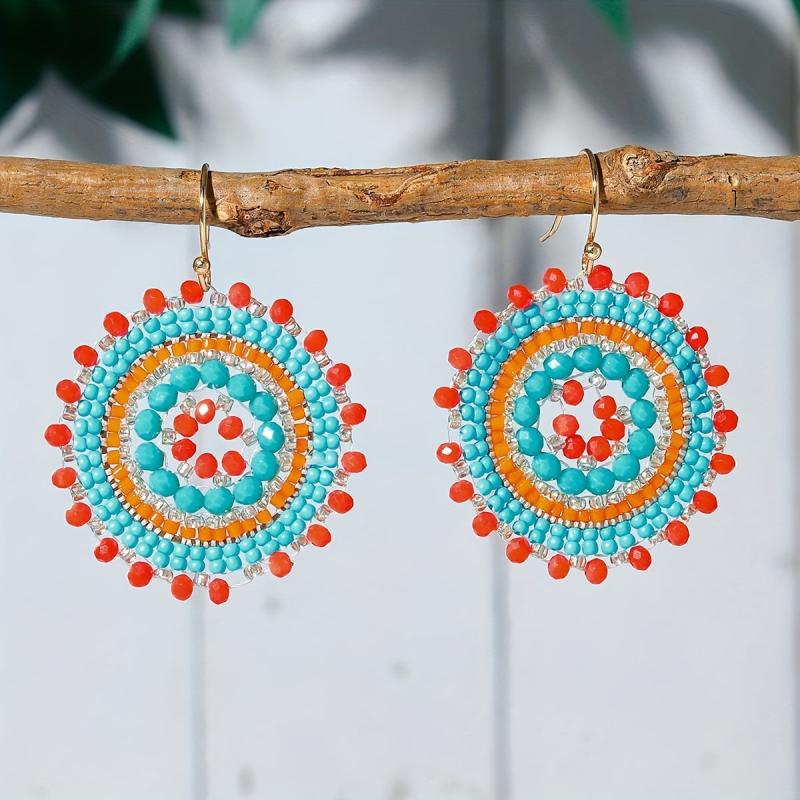 Add a touch of retro Bohemian charm to your vacation outfits with these flower rhinestone bead dangle earrings.