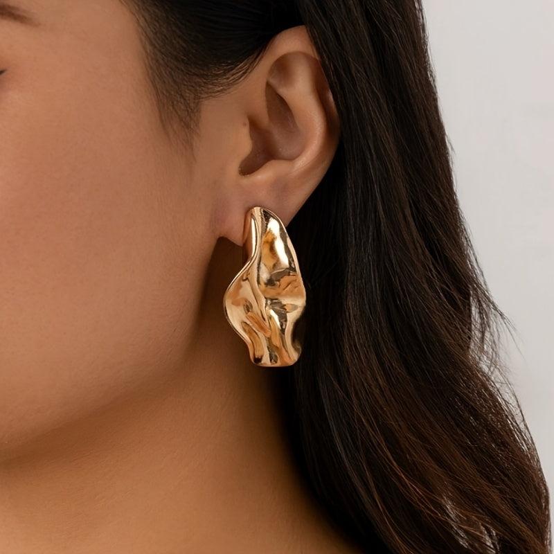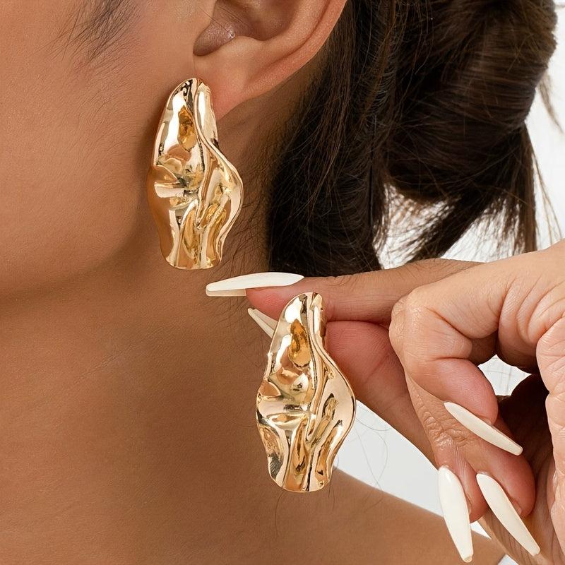 Add a touch of boho chic to your outfit with these unique geometric textured earrings. Perfect for parties and vacations.