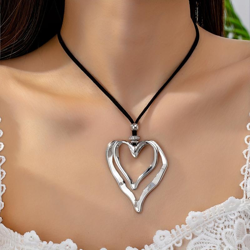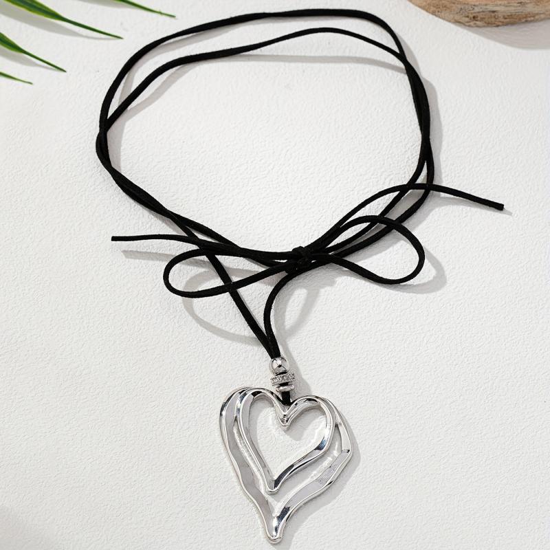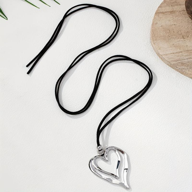 This zinc alloy pendant necklace features a large heart design with a bohemian style cord and K golden plating. It makes a perfect everyday jewelry gift for Mother's Day, Valentine's Day, Mom, Mama, or any special occasion.
