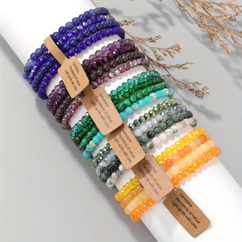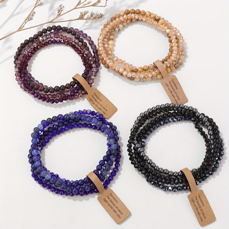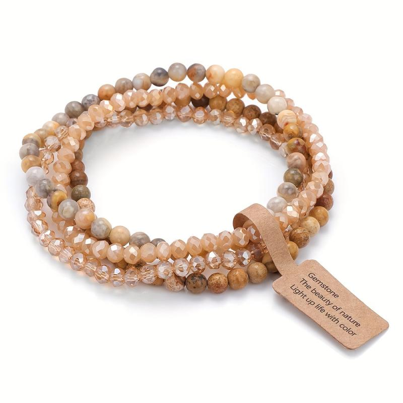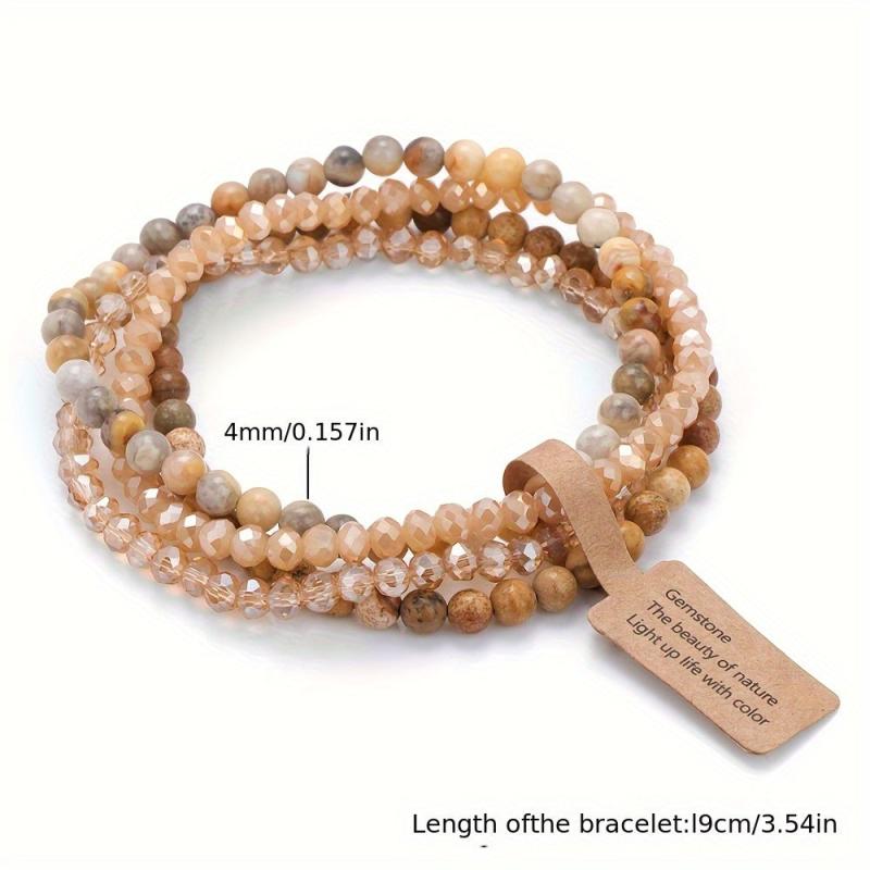 Elevate your casual attire with this 4-pack of bohemian style women's bracelets featuring natural stone beads in a gradient pattern. Each bracelet comes with an inspirational card, making it a perfect gift option.