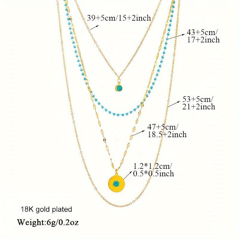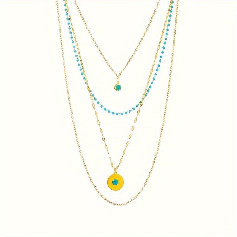 Elevate your look with this gilded four layer chain necklace featuring a personalized resin mosaic design. Ideal for daily wear or party occasions.