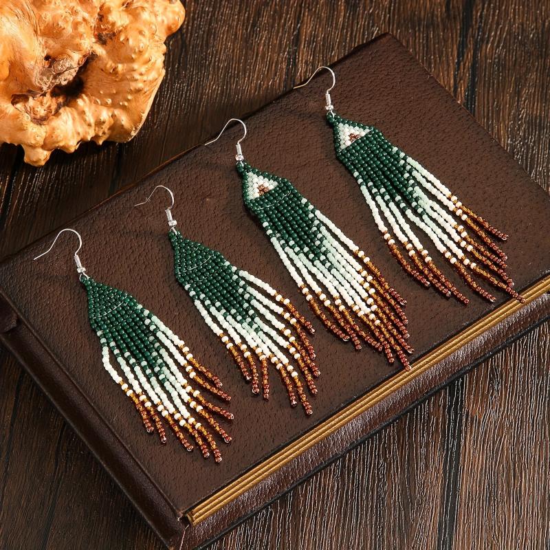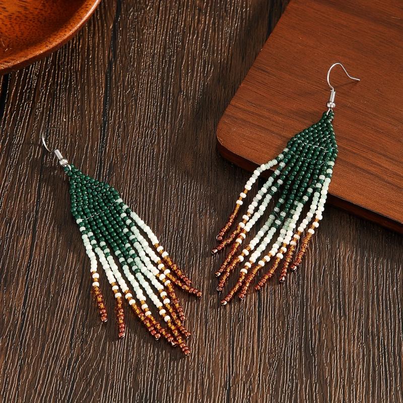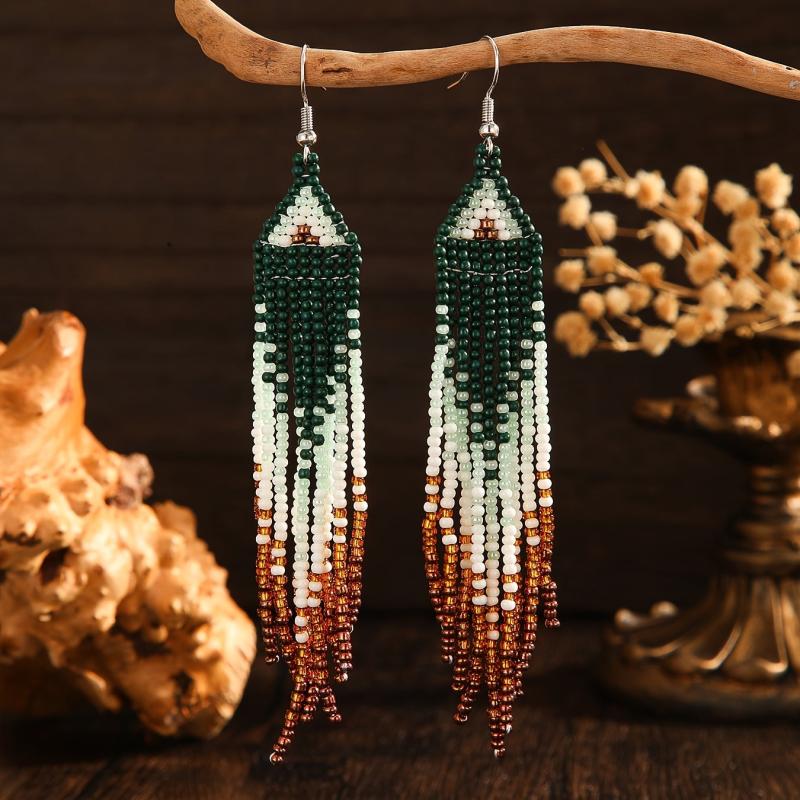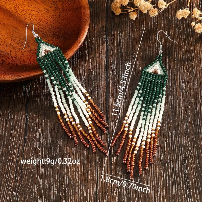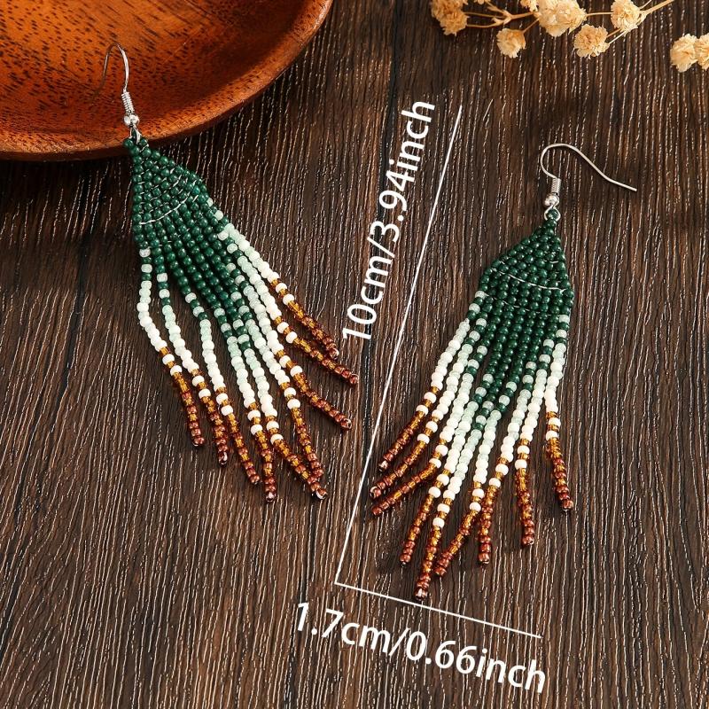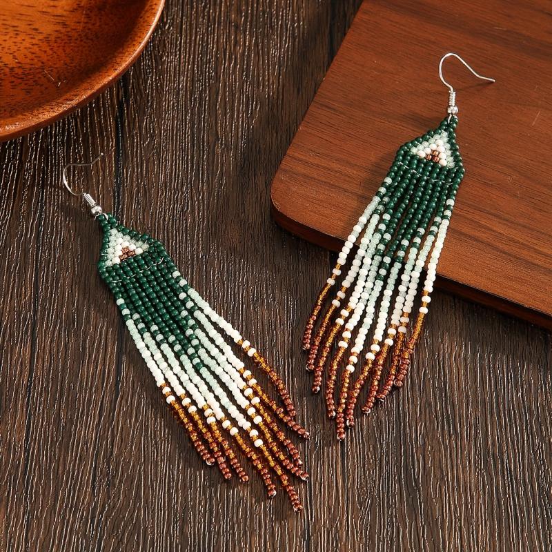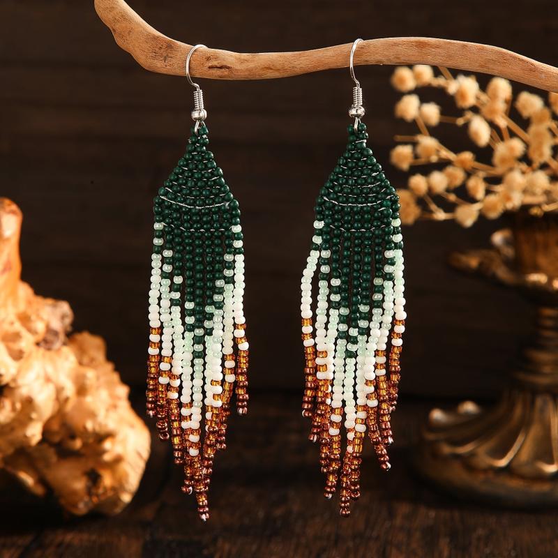 Elegant and chic bohemian style earrings with gradient tassels and glass seed beads. Perfect for daily wear and casual attire.