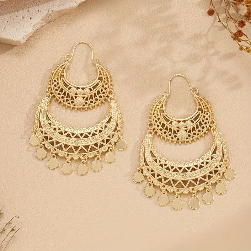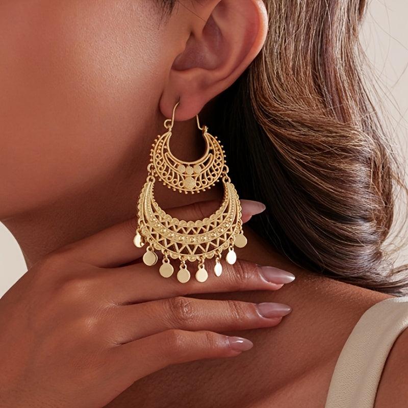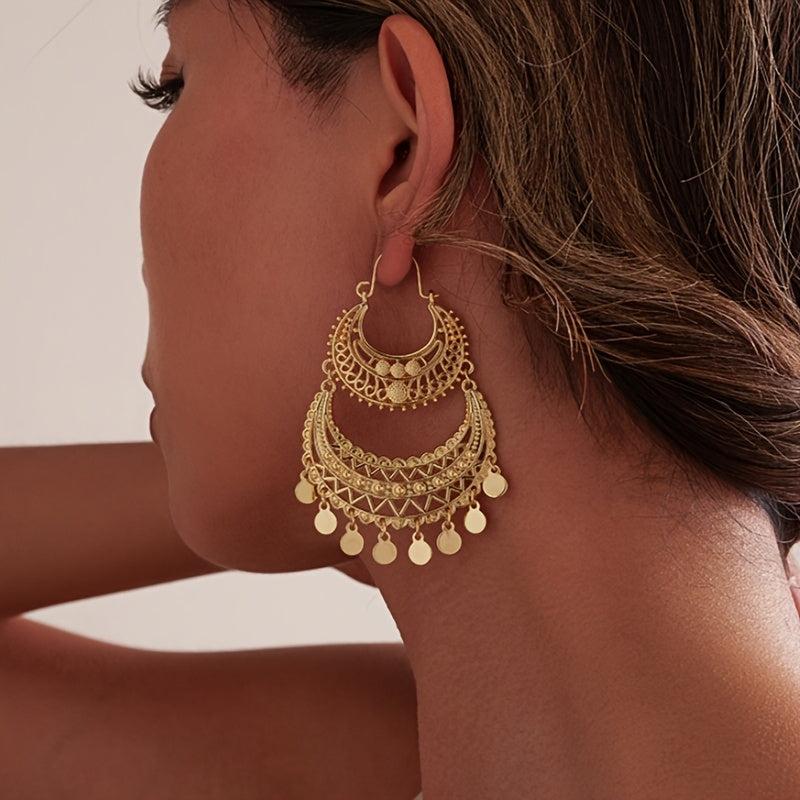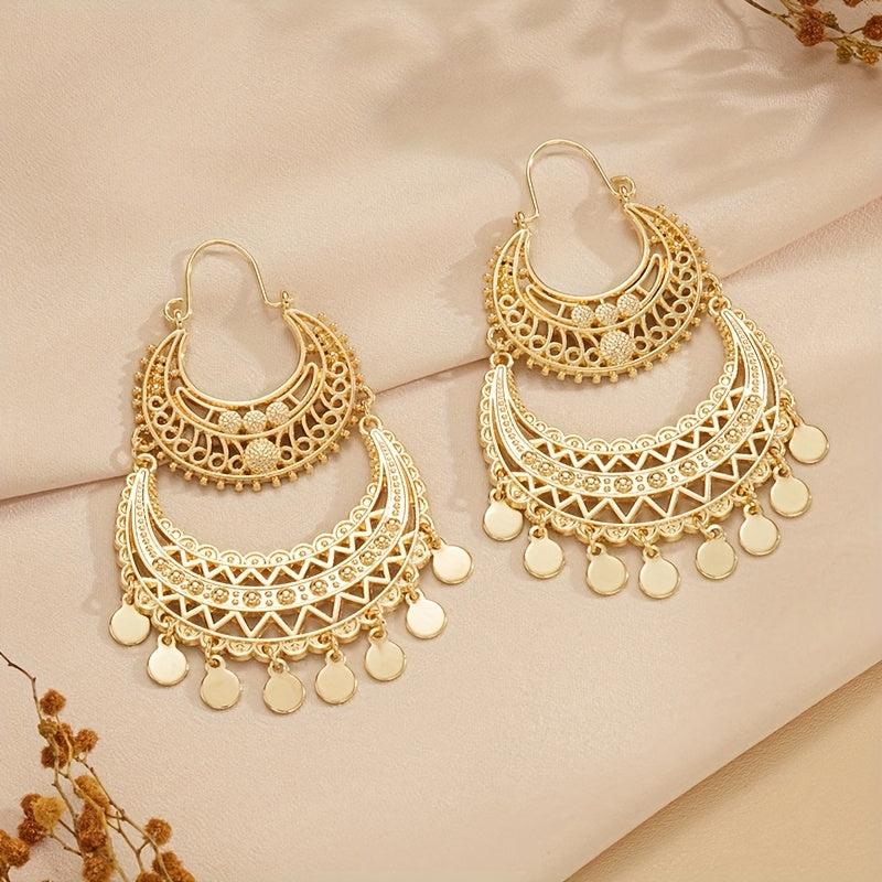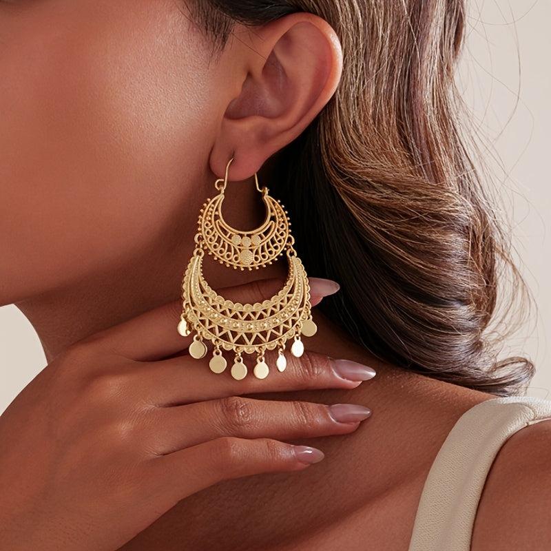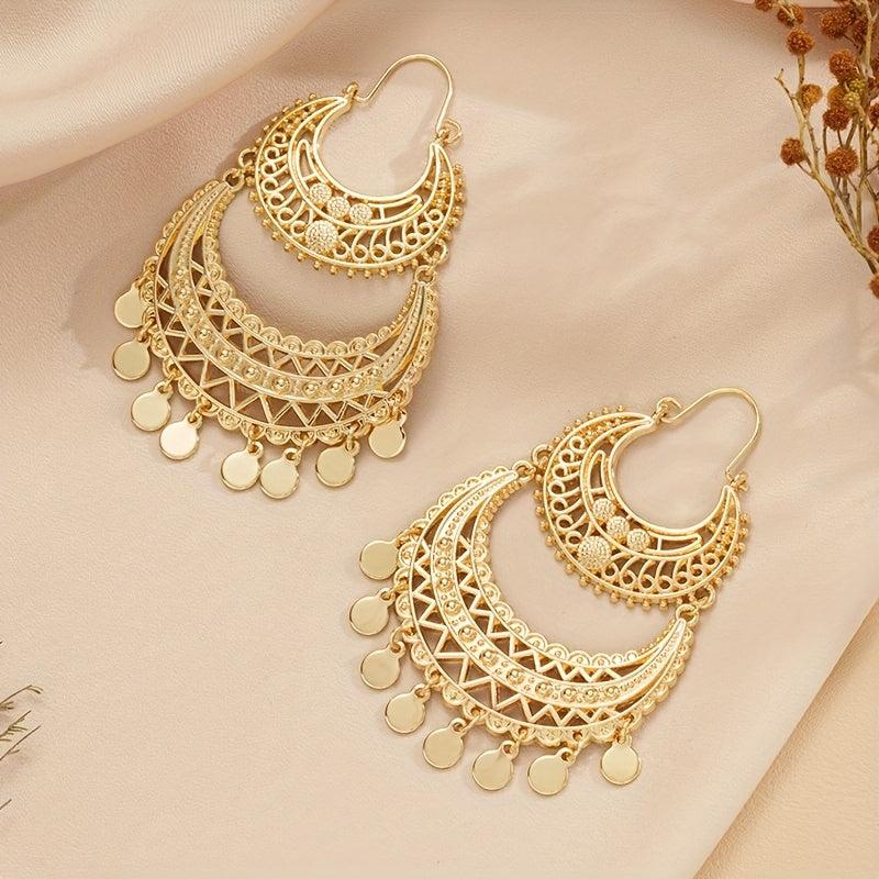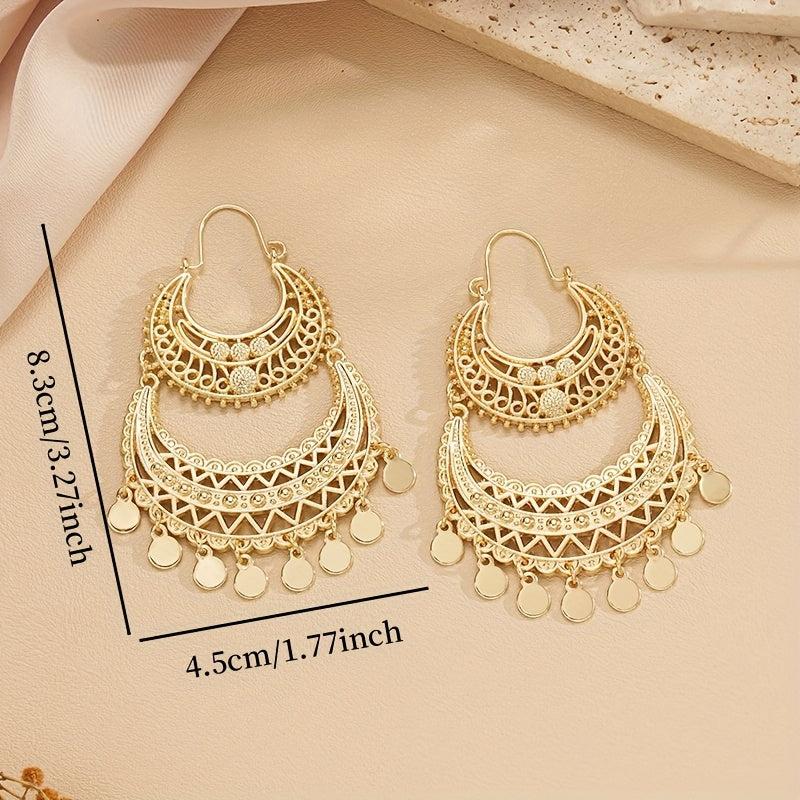Elevate your style with these vintage hollow pattern tassel earrings perfect for dance parties and vacation wear.
