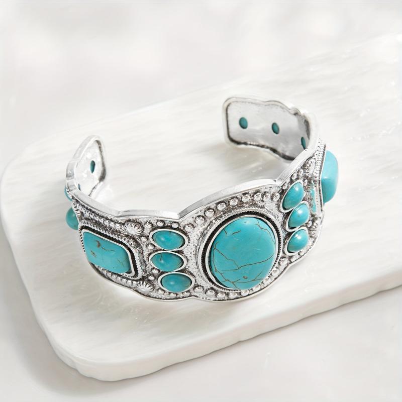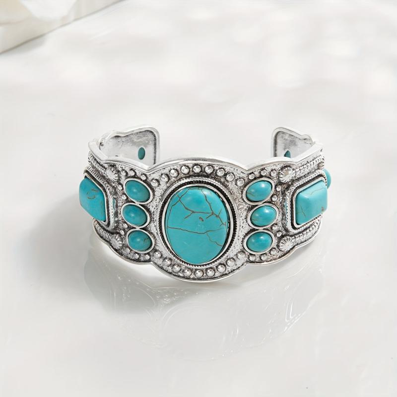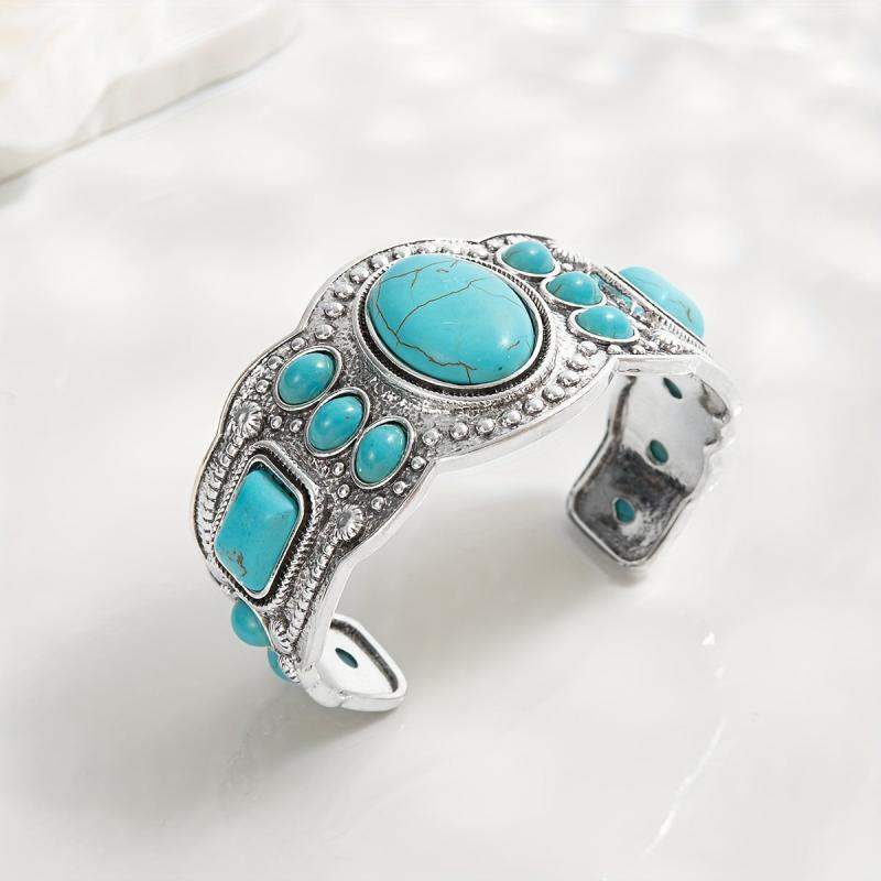 Bohemian Style Turquoise Stone Cuff Bangle for Women