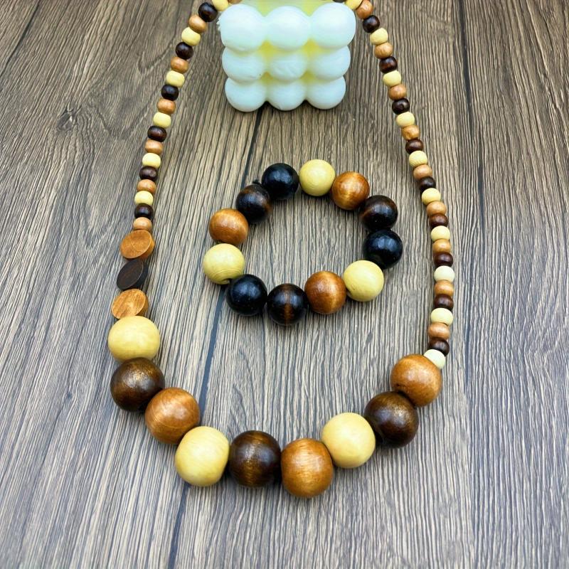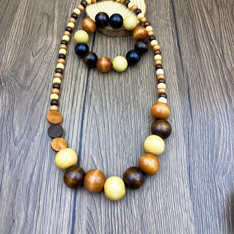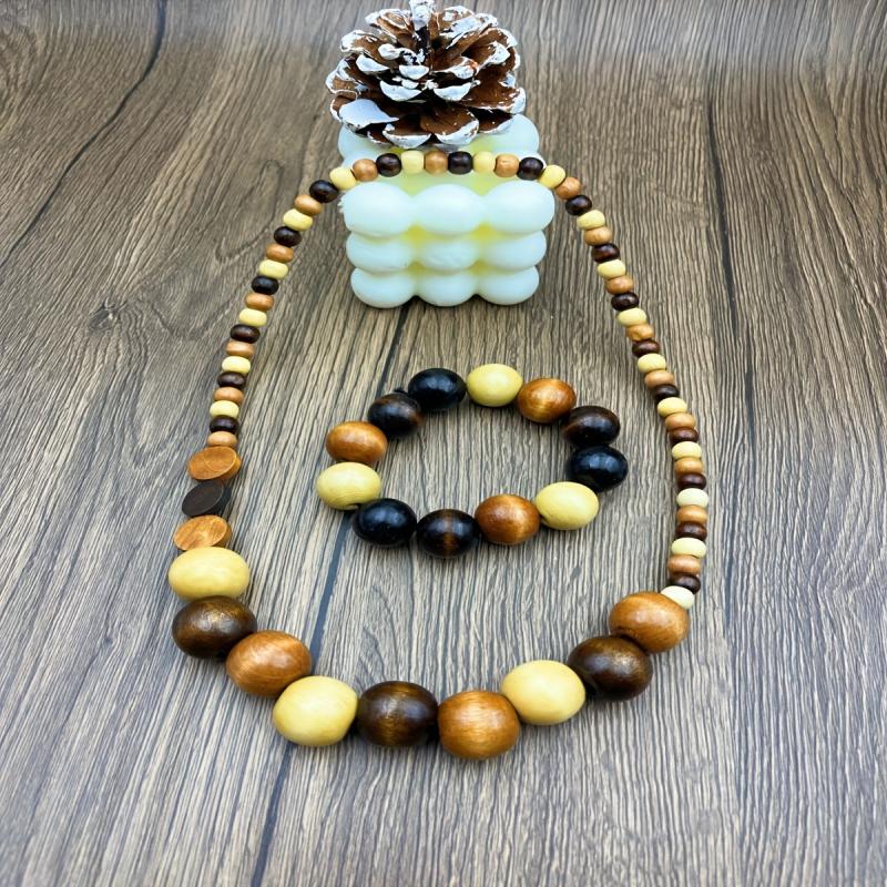 Elevate your daily wear with this Bohemian style wooden beads necklace and bracelet set. Perfect for all seasons, this accessory adds a touch of uniqueness to your outfit.