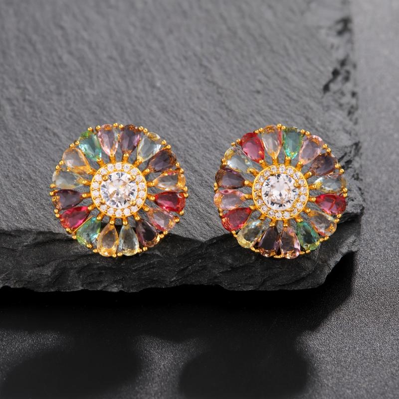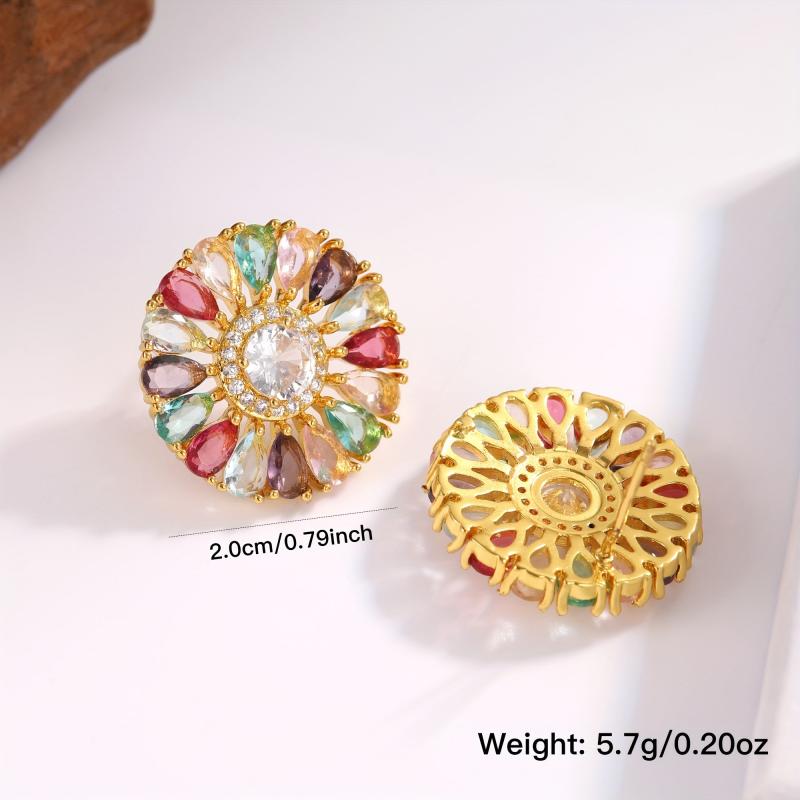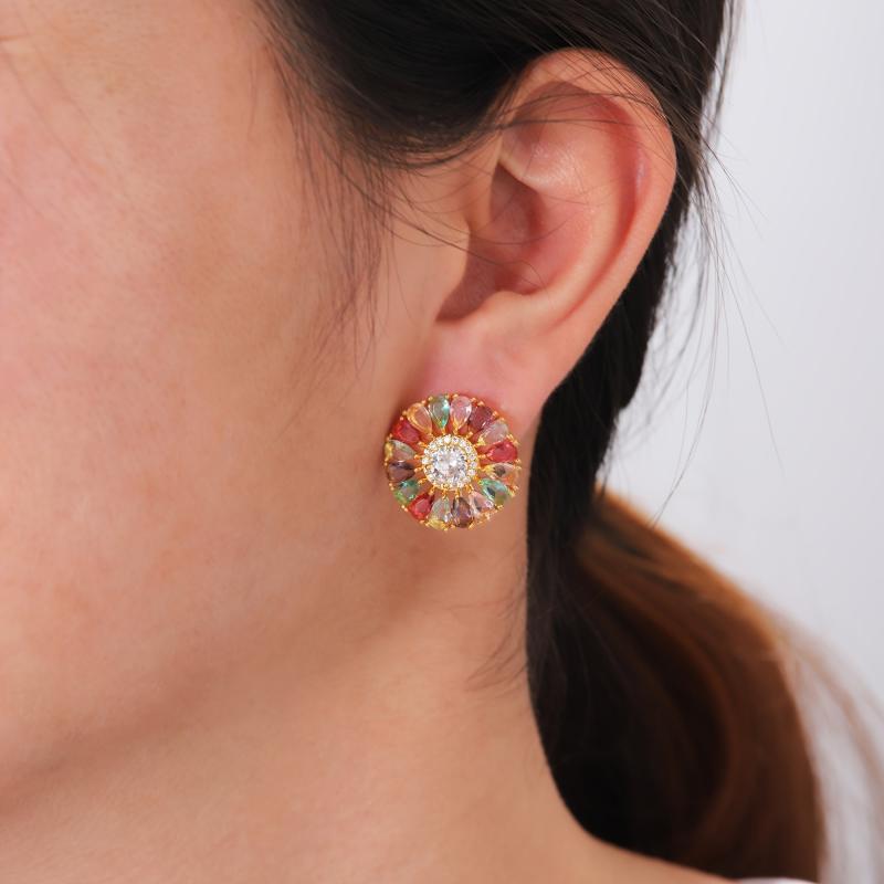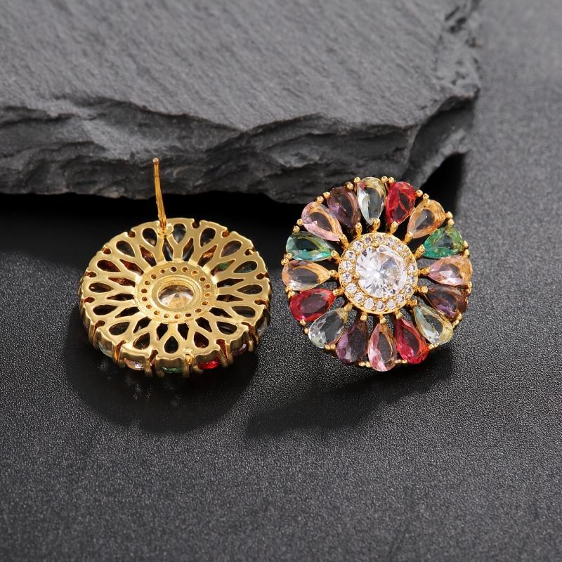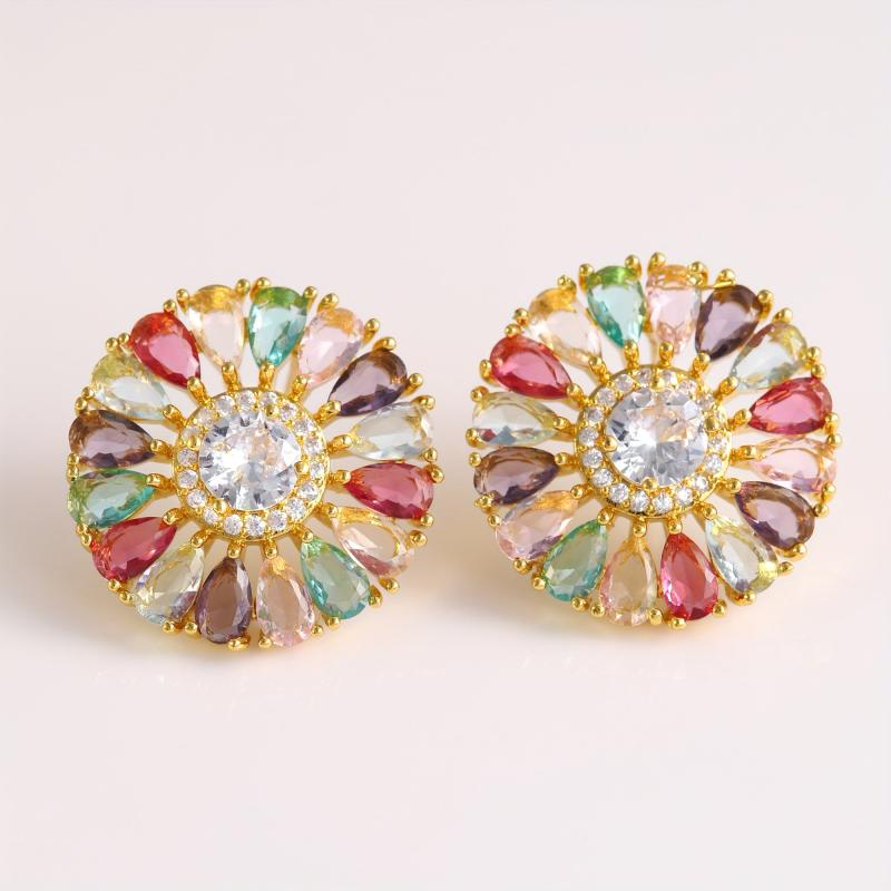 Elevate your style with this bohemian-inspired earrings set. Featuring large colorful zirconia flowers, these earrings are perfect for adding a pop of color to any outfit.