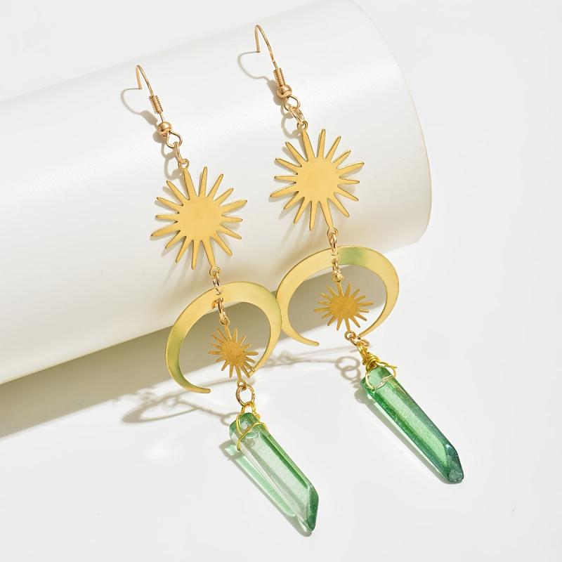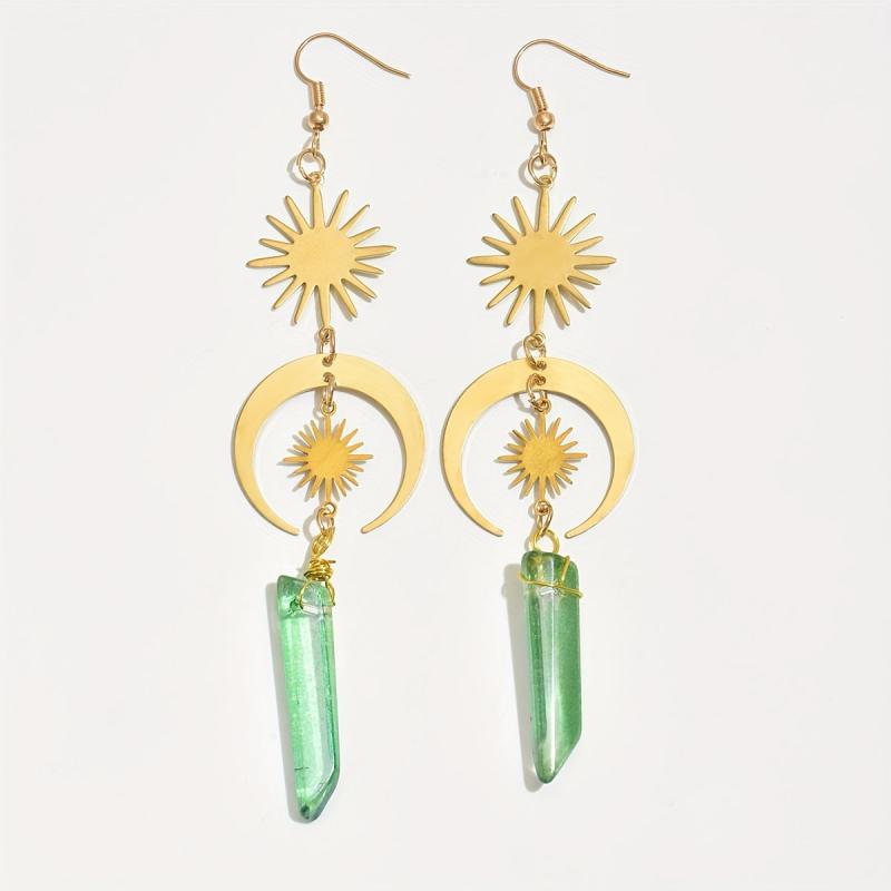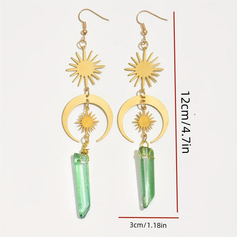 Add a touch of vintage Bohemian style to your ensemble with these unique dangle earrings featuring sun and moon design. Crafted from artificial crystal and zinc alloy, these earrings are perfect for casual wear or as a gift.