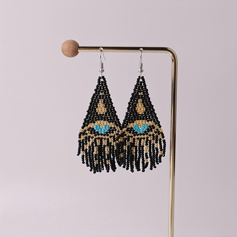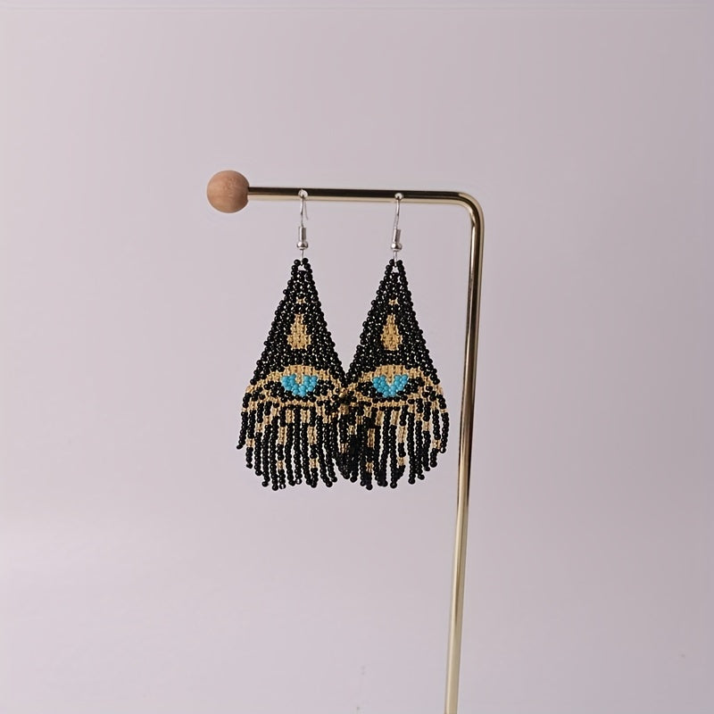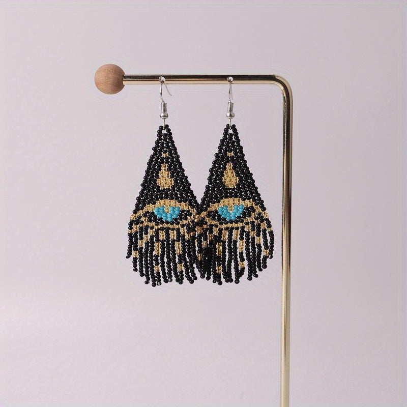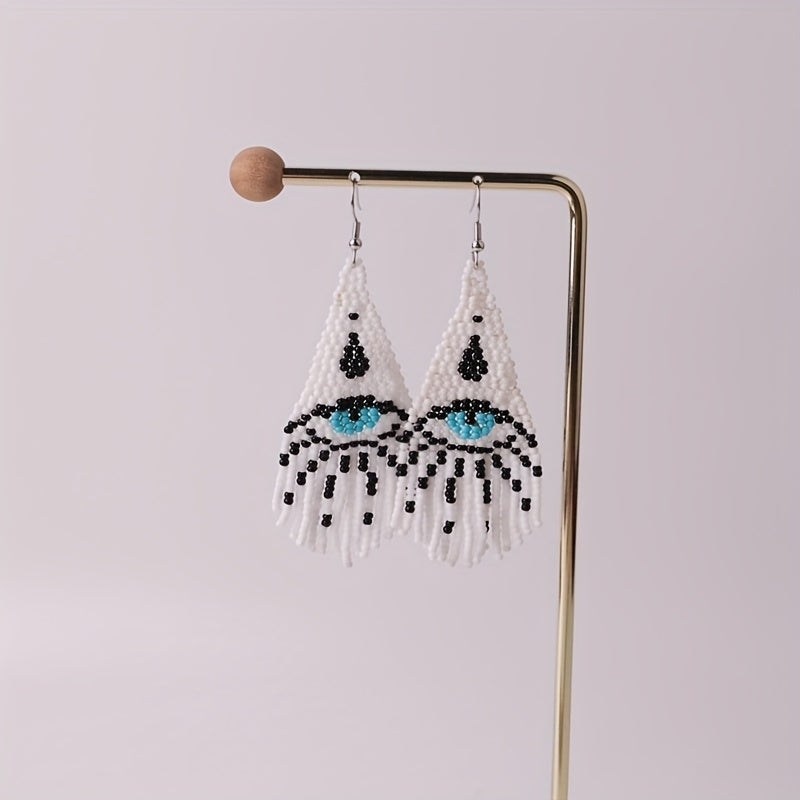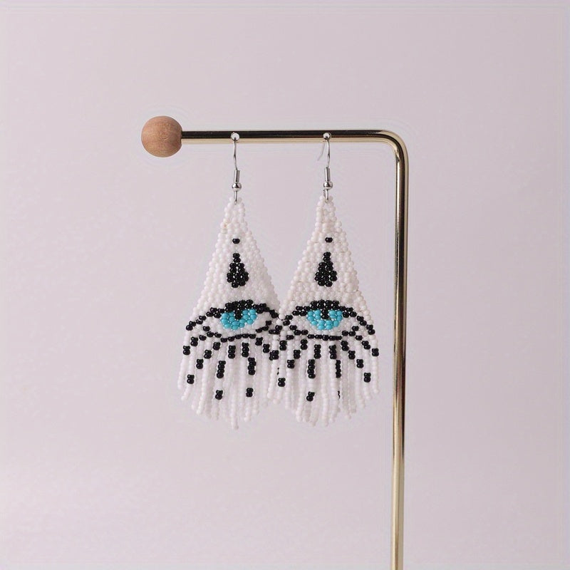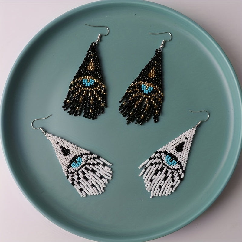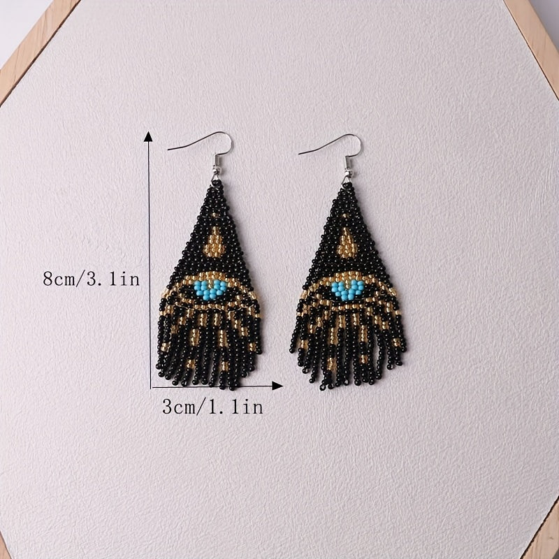 Add an edgy touch to your look with these devil's eye earrings featuring tassel accents and handmade details.