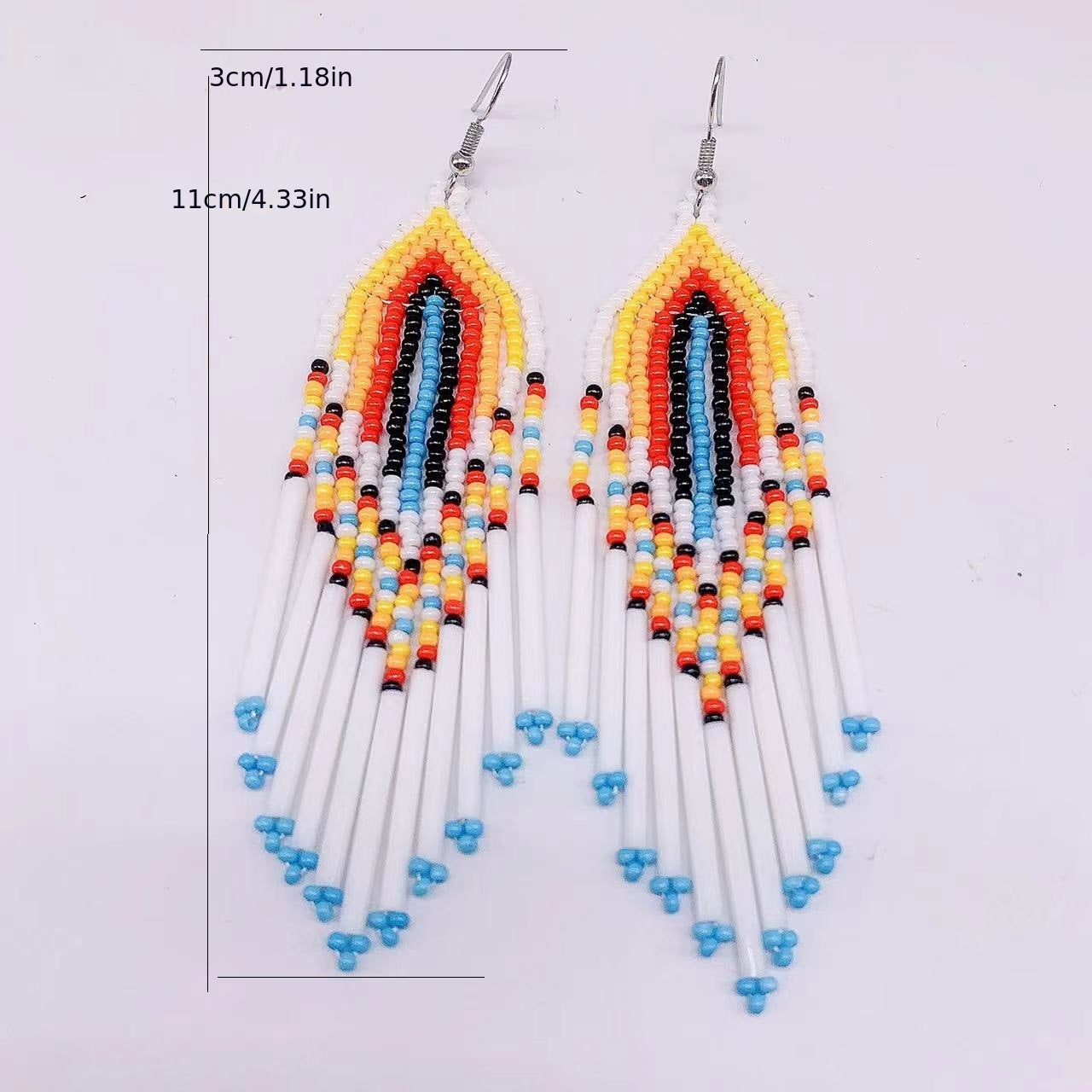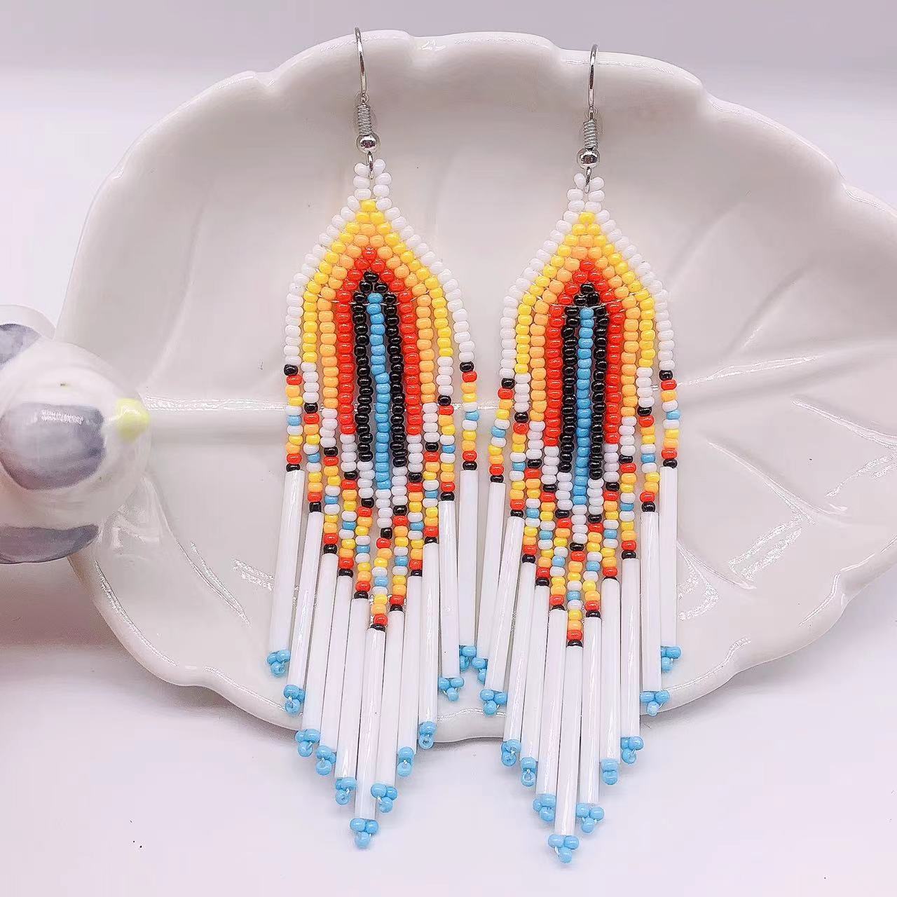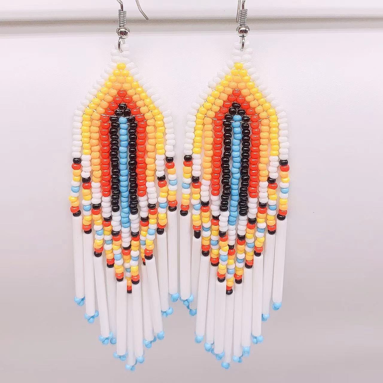 These Bohemian tassel earrings are a European and American hot trend. They feature long brass tubes and rice beads for a stylish look.