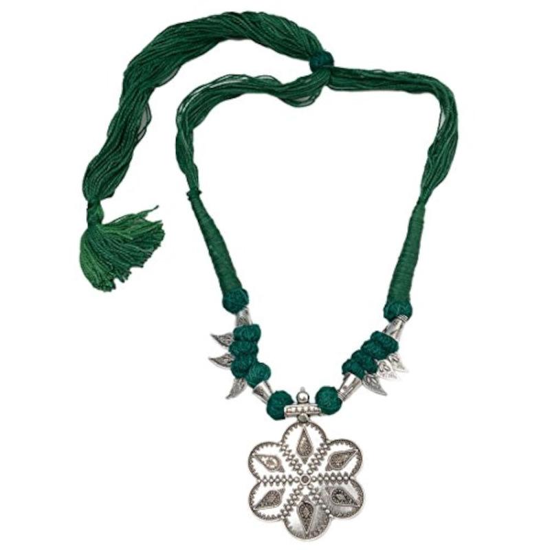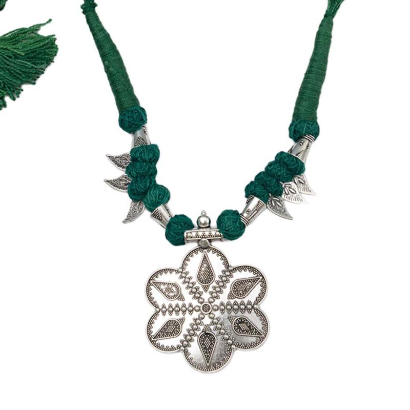 Elevate your style with this unique Gypsy tribal rope necklace. Handcrafted with intricate details, this necklace is a statement piece that adds a touch of bohemian flair to any outfit.