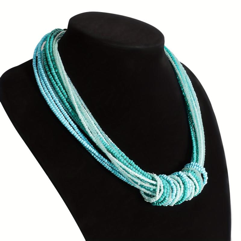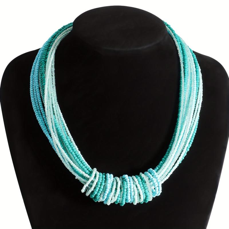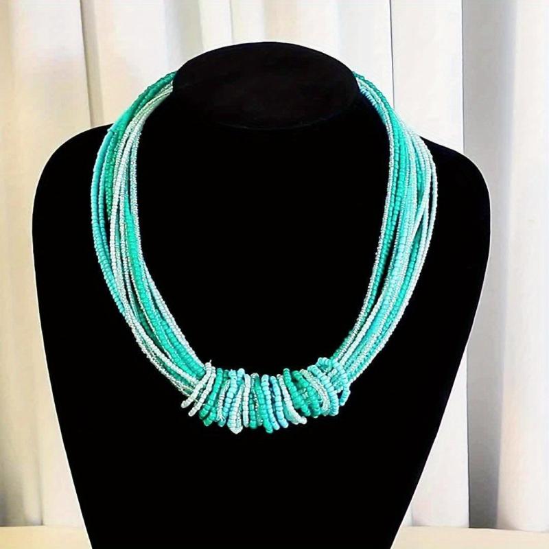 Add a touch of bohemian style to your outfit with this lightweight strand necklace featuring turquoise and geometric beads. Perfect for parties, daily wear, and gift giving.