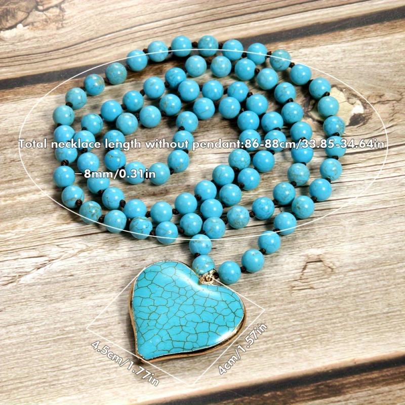 Upgrade your style with this beautiful turquoise heart pendant necklace featuring 8mm natural stone beads and a golden tone heart charm. An elegant accessory that makes a perfect Mother's Day gift for a loved one.