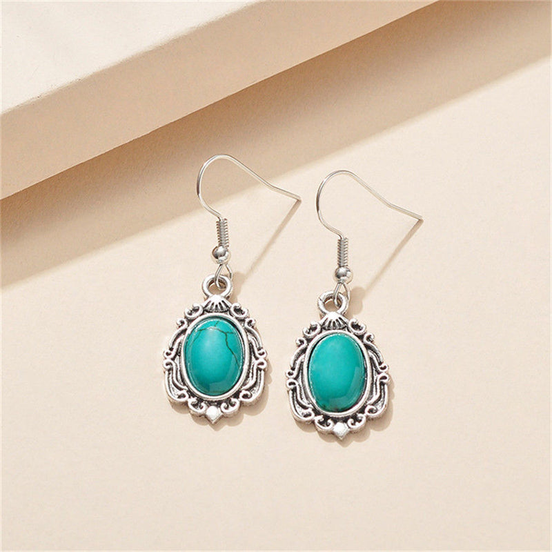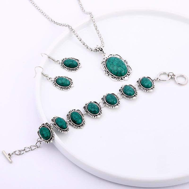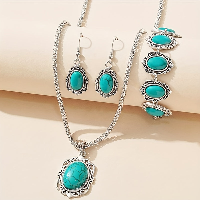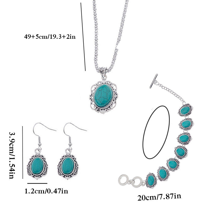 Enhance your style with this vintage bohemian jewelry set featuring a turquoise necklace, bracelet, and earrings. Perfect for men's accessories.