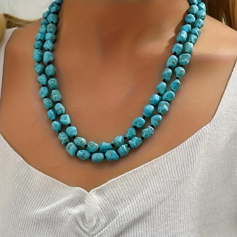 Elevate your style with this double layer turquoise necklace featuring natural stone beads. Perfect for everyday wear or special occasions, this versatile piece makes a great gift year-round.