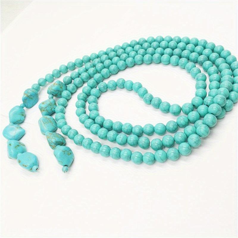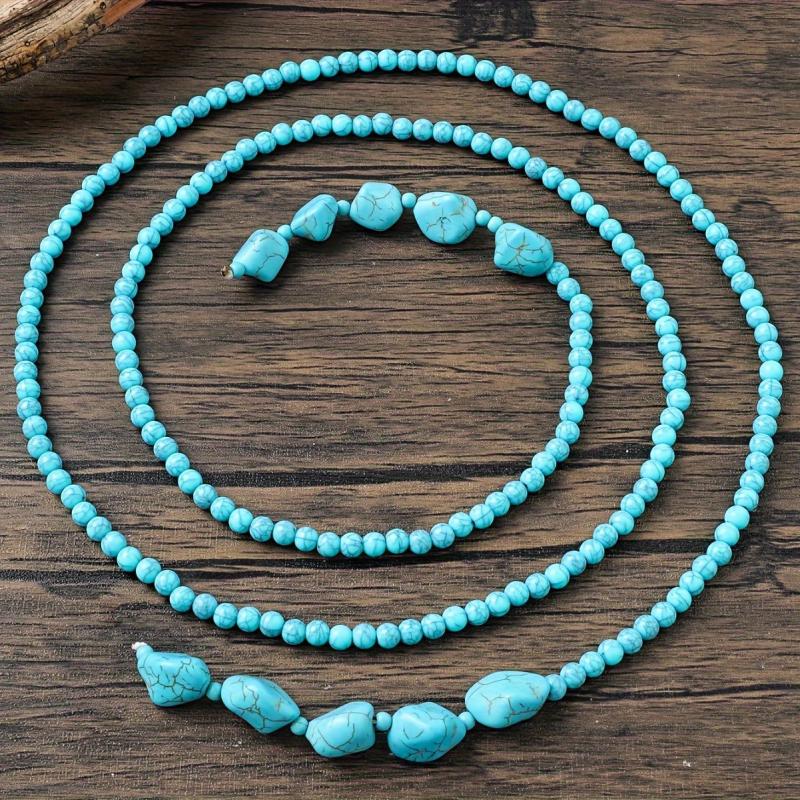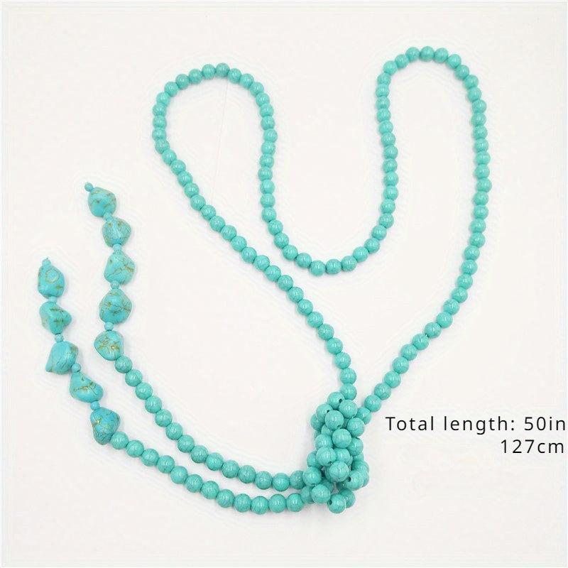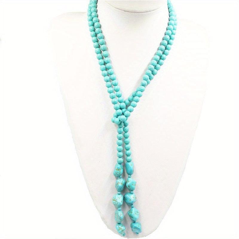 Bohemian Turquoise Stone Necklace Long Beaded Jewelry