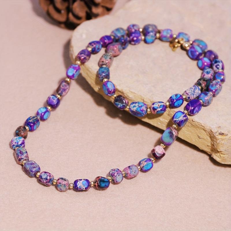 Embrace the bohemian style with this unisex necklace featuring natural stone beads. Ideal for men who appreciate a unique accessory.