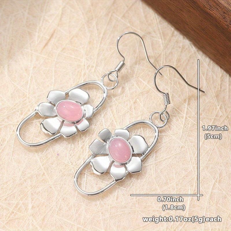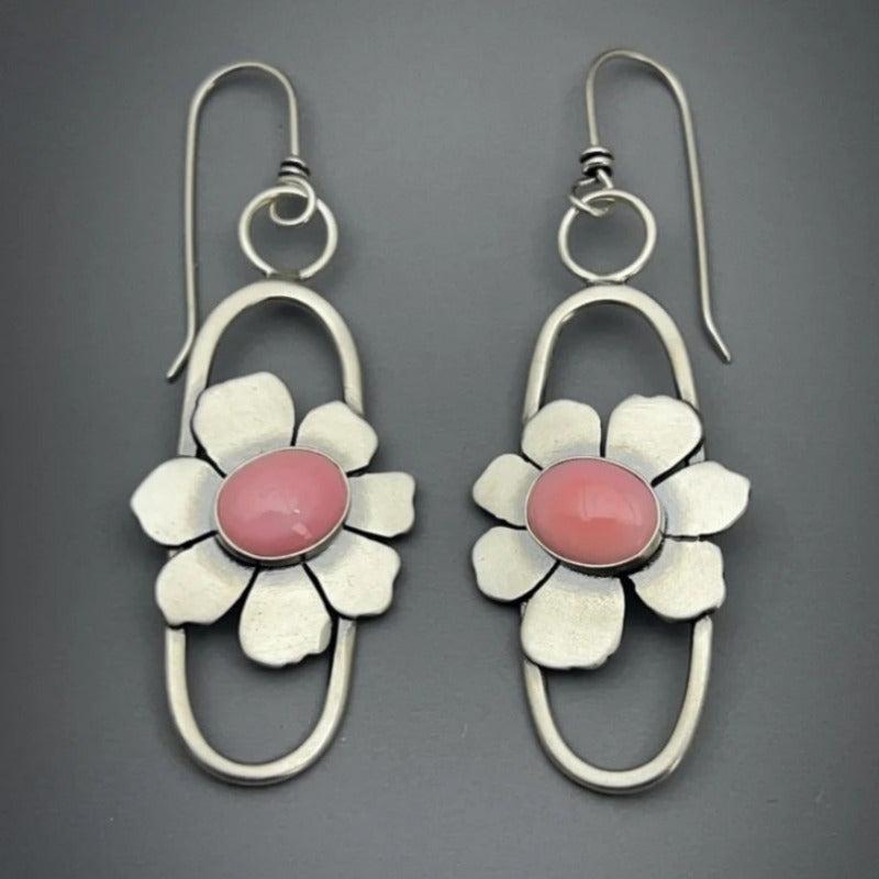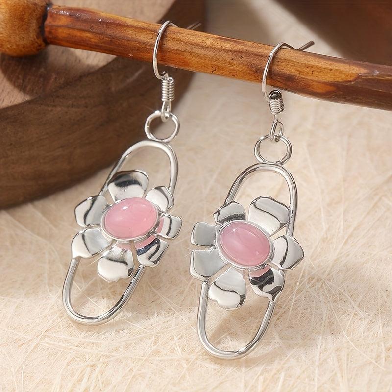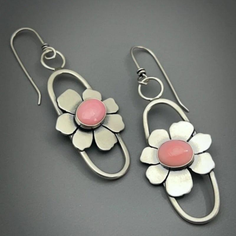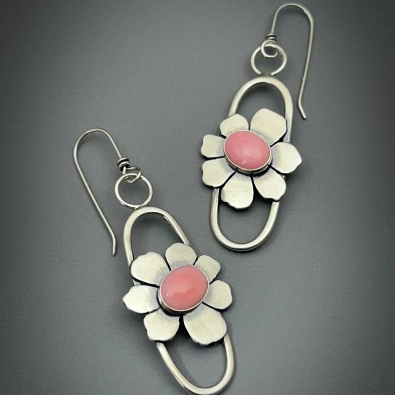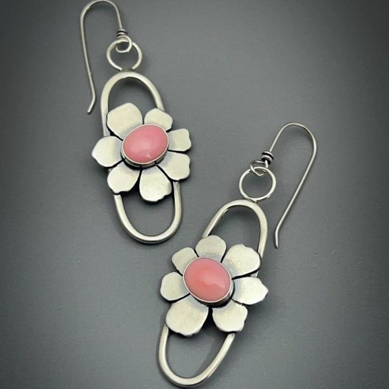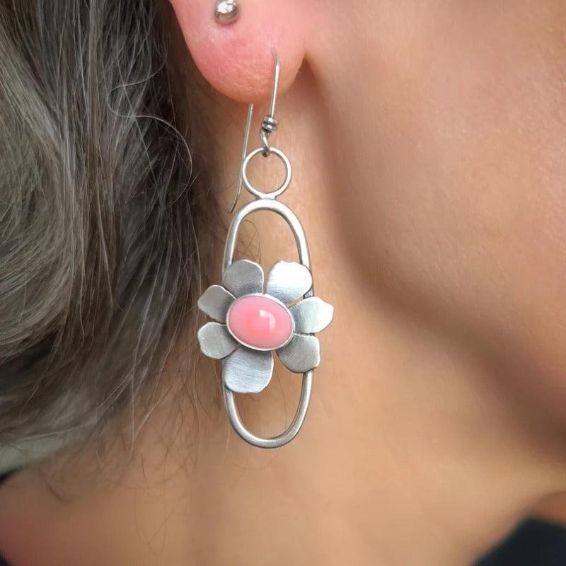 Elevate your style with these unique bohemian dangle earrings featuring conch botanical design and pink moonstone. Perfect for all seasons, these copper earrings make a great gift for women.