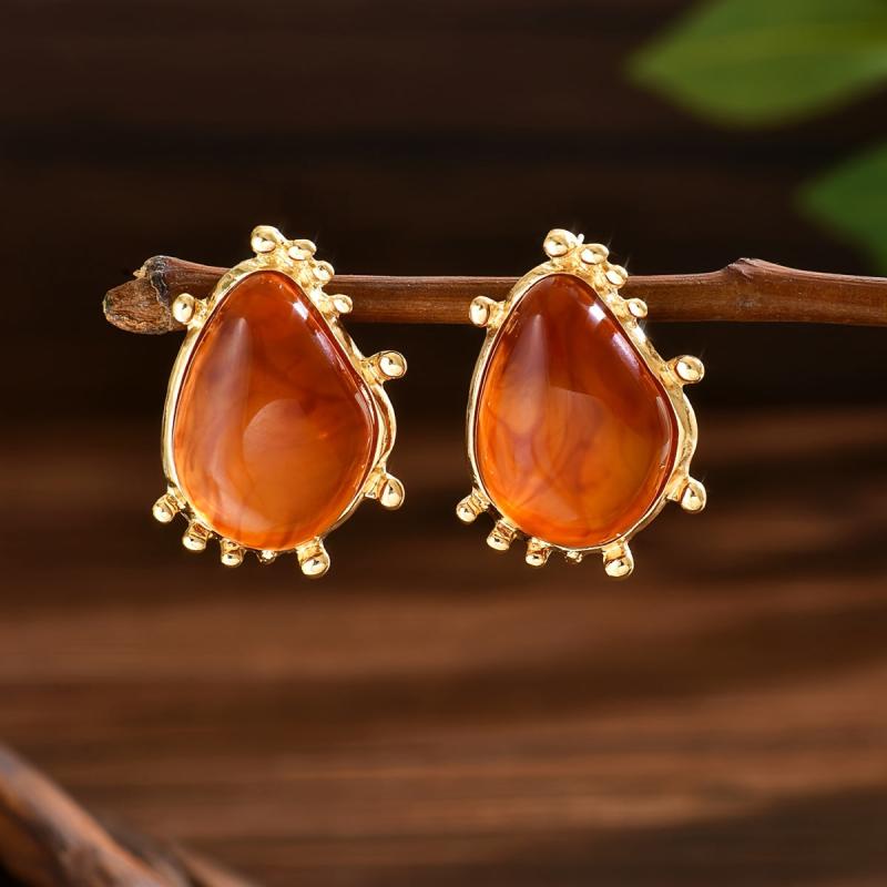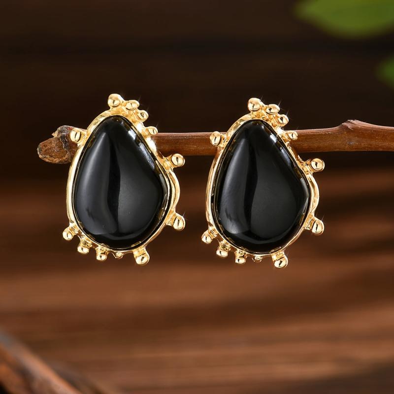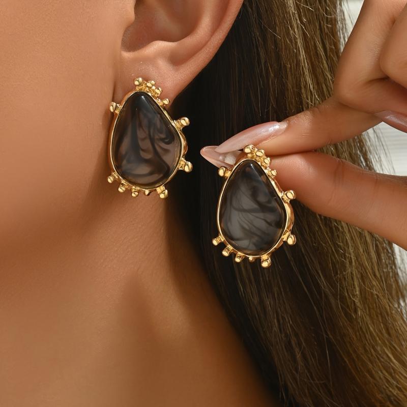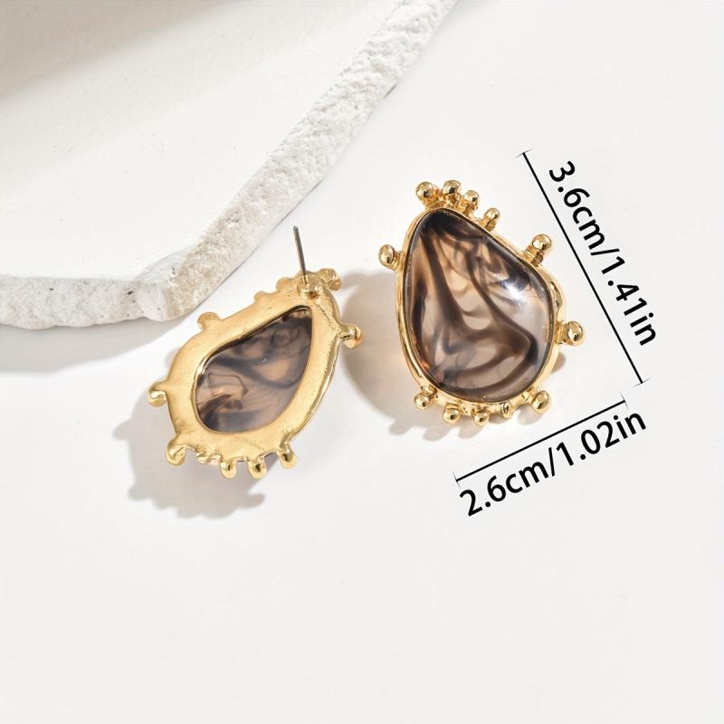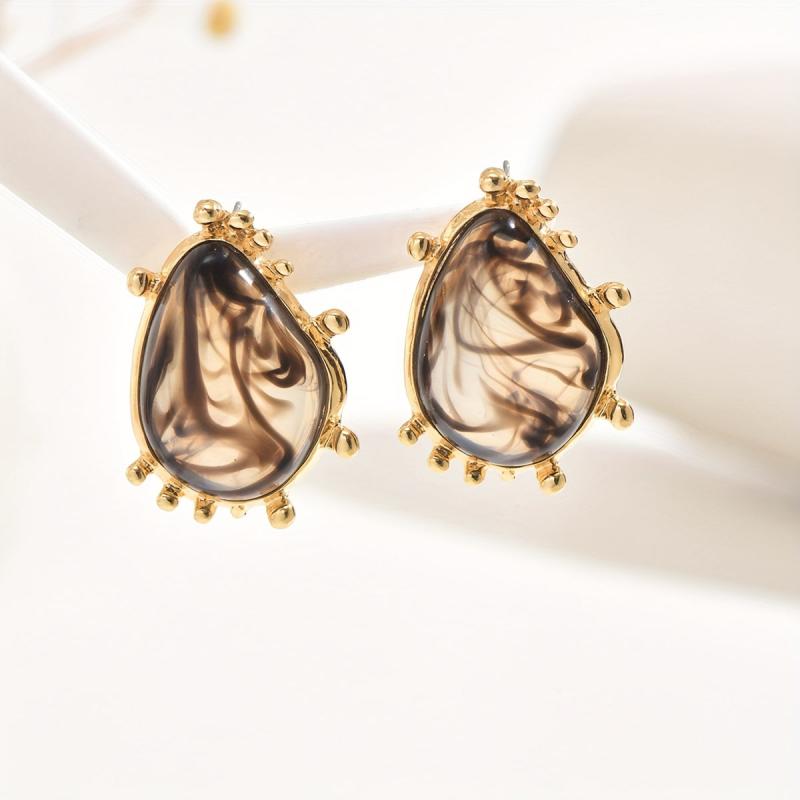 Elegant golden tone earrings featuring marbled resin in unique irregular patterns. Perfect for vacation parties or casual wear.