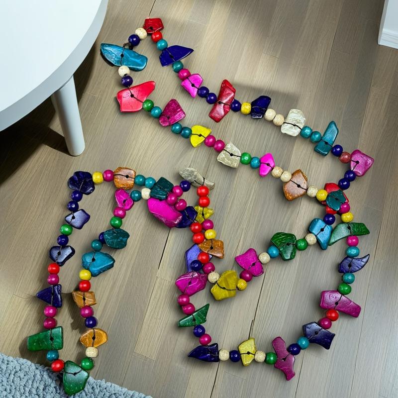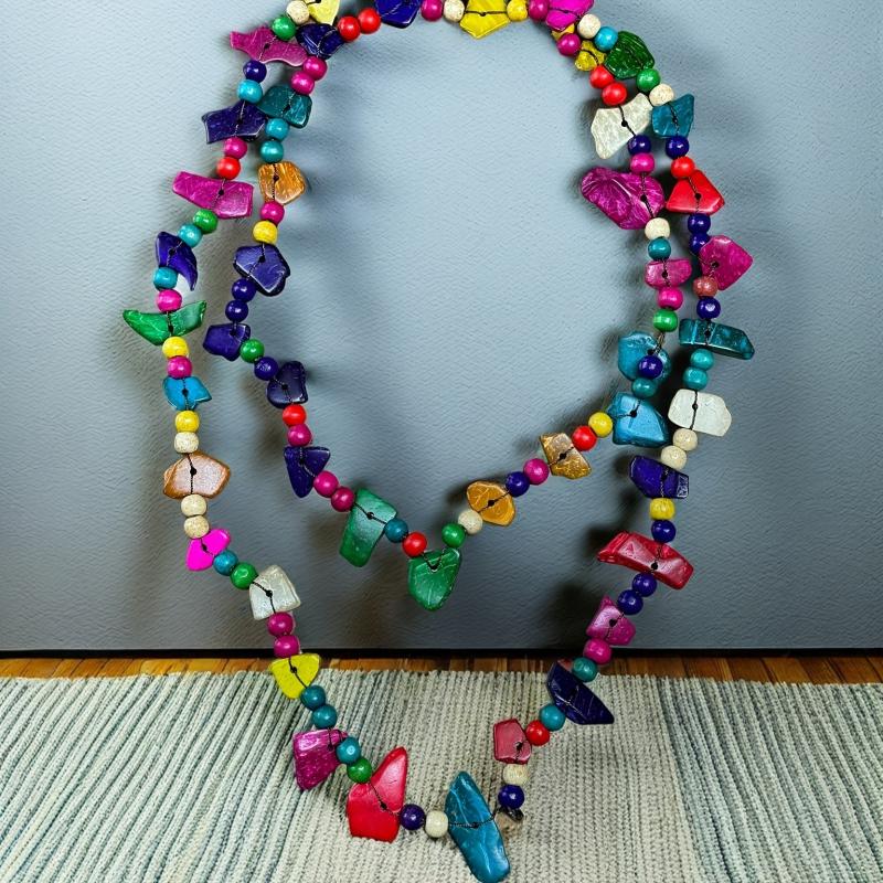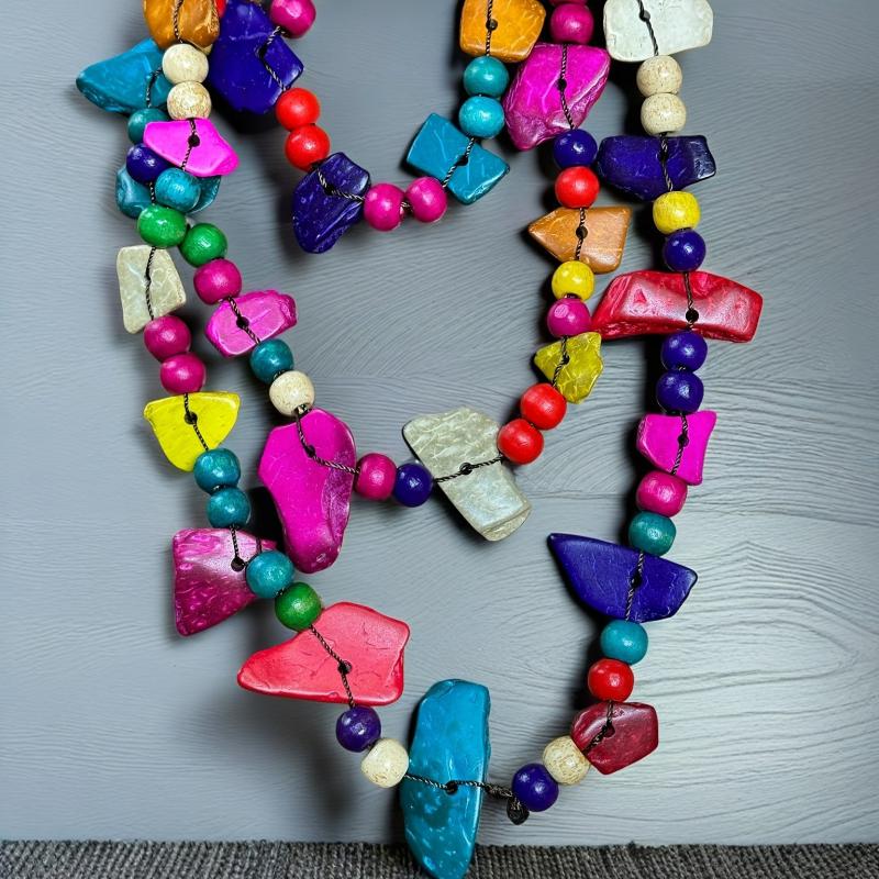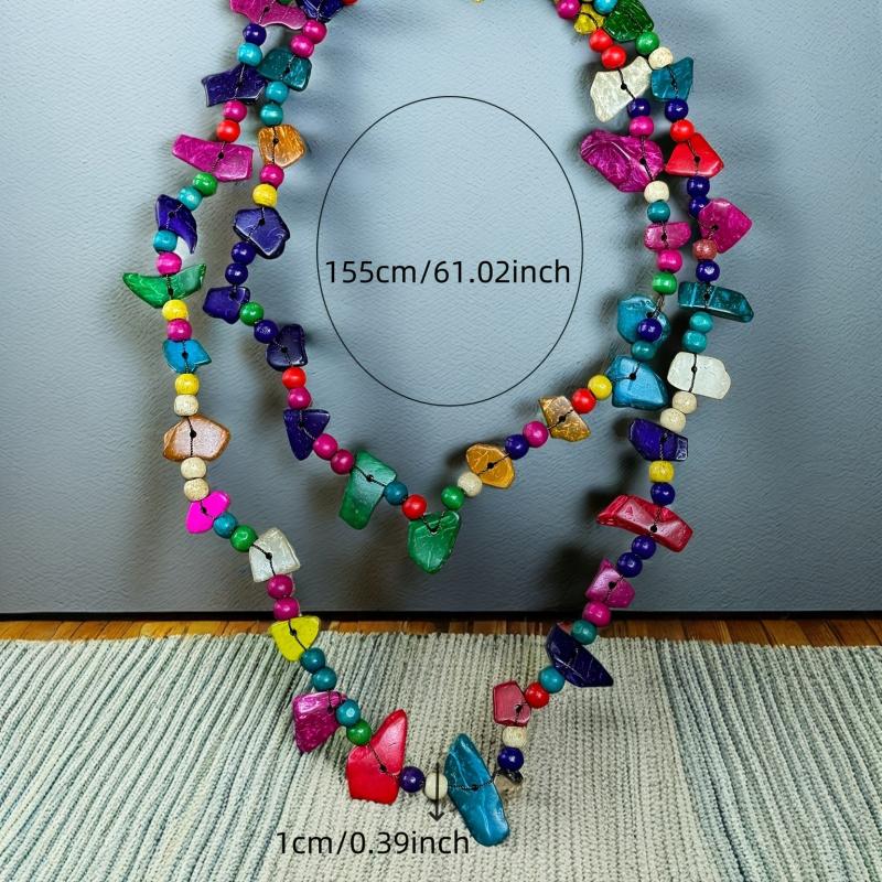 Elevate your fashion with this bohemian vintage style double layer necklace made from irregular coconut shells. Wear it in two layers for a versatile look.