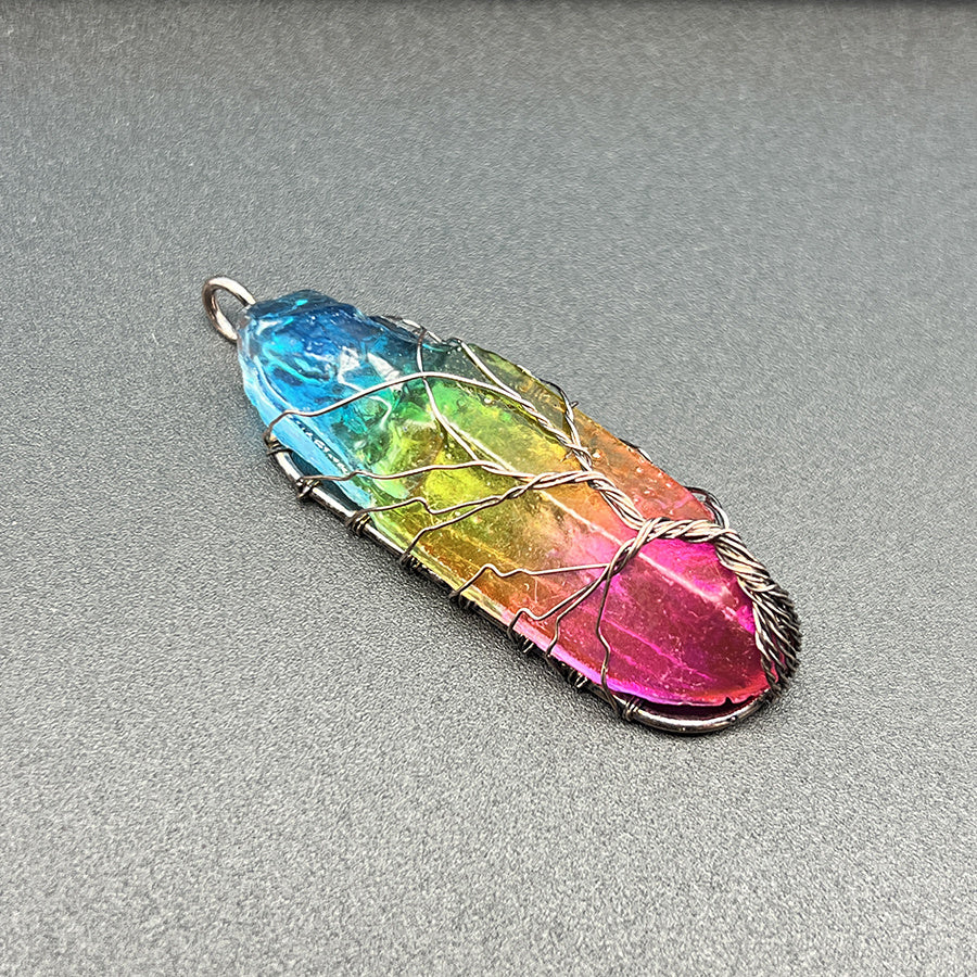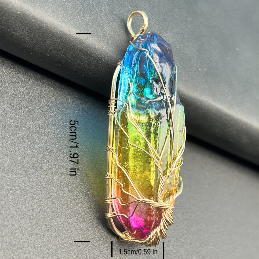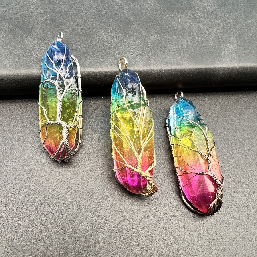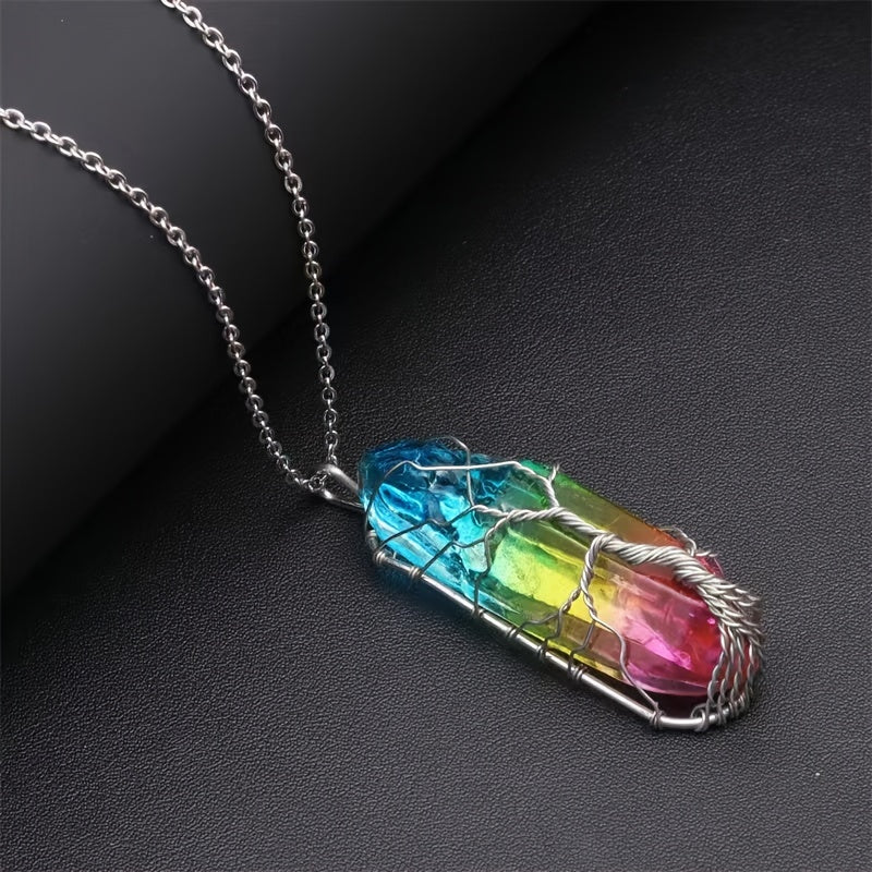 Embrace natural beauty with this colorful Tree Of Life crystal column necklace, perfect for bohemian style lovers.