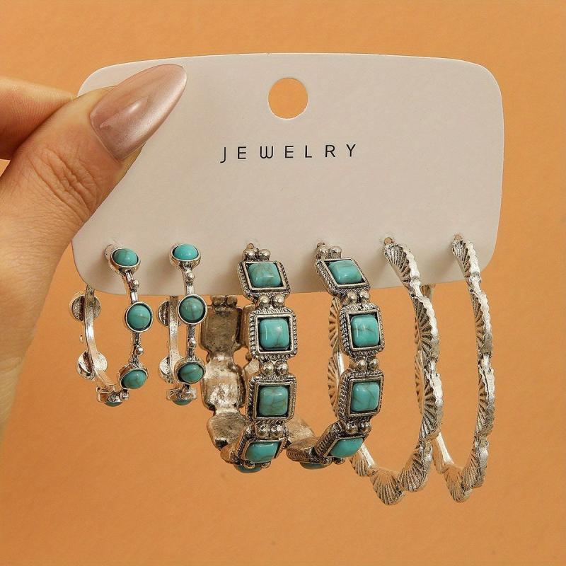Add a touch of Bohemian style to your casual attire with these vintage-inspired turquoise earrings. Made from zinc alloy and featuring synthetic turquoise stones, these earrings are perfect for Halloween, Easter, or any day of the year.