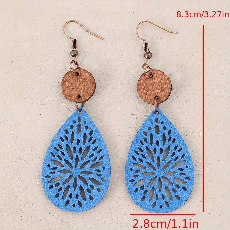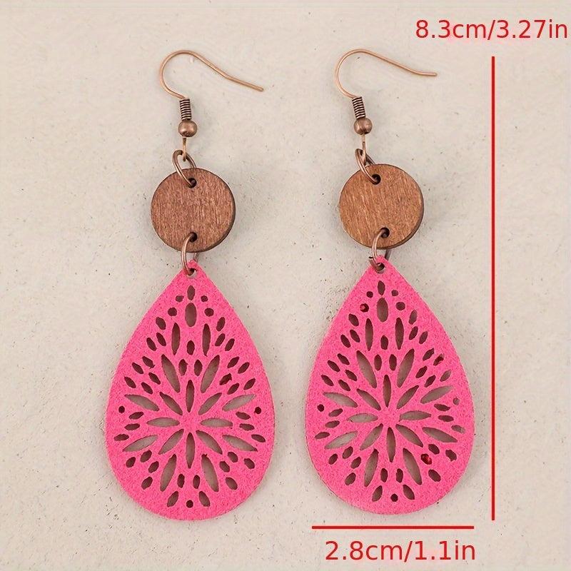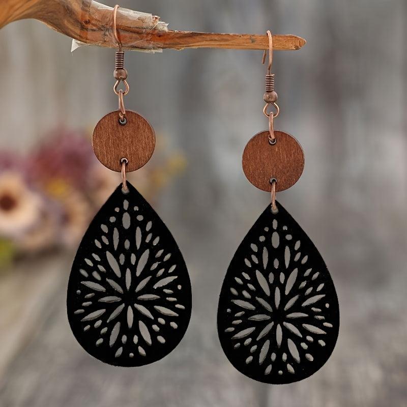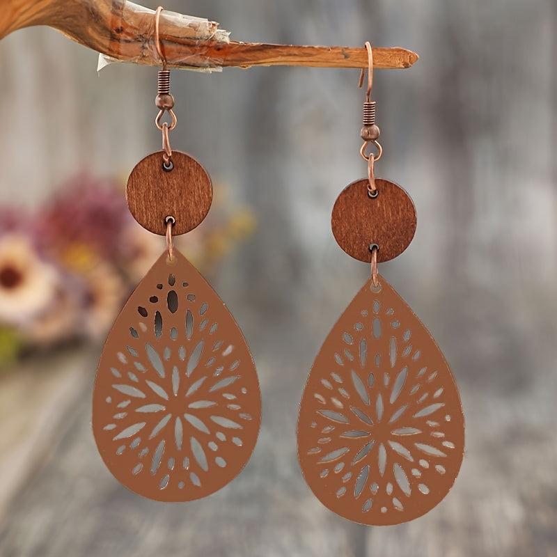 Add a touch of bohemian flair to your outfit with these fashionable vintage-inspired earrings. The water drop hollow pattern and small round design give them a unique and stylish look.